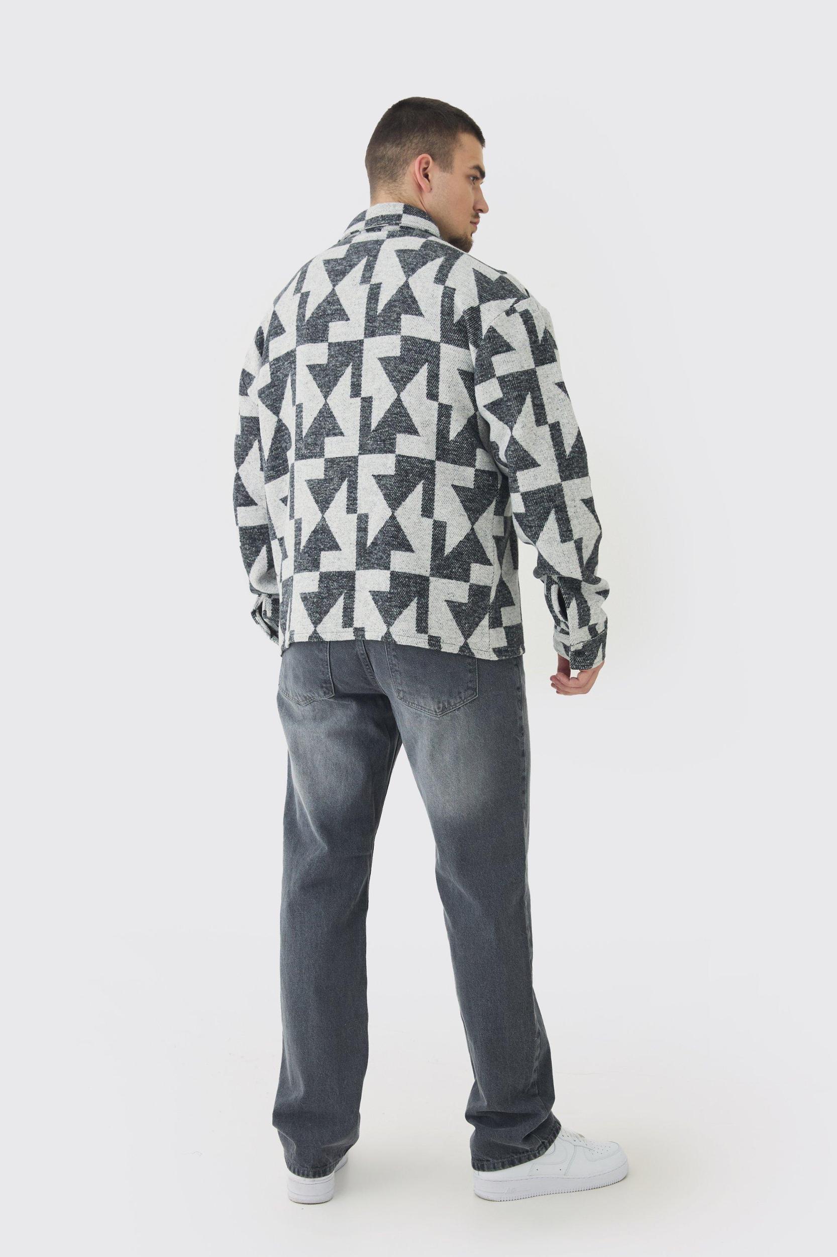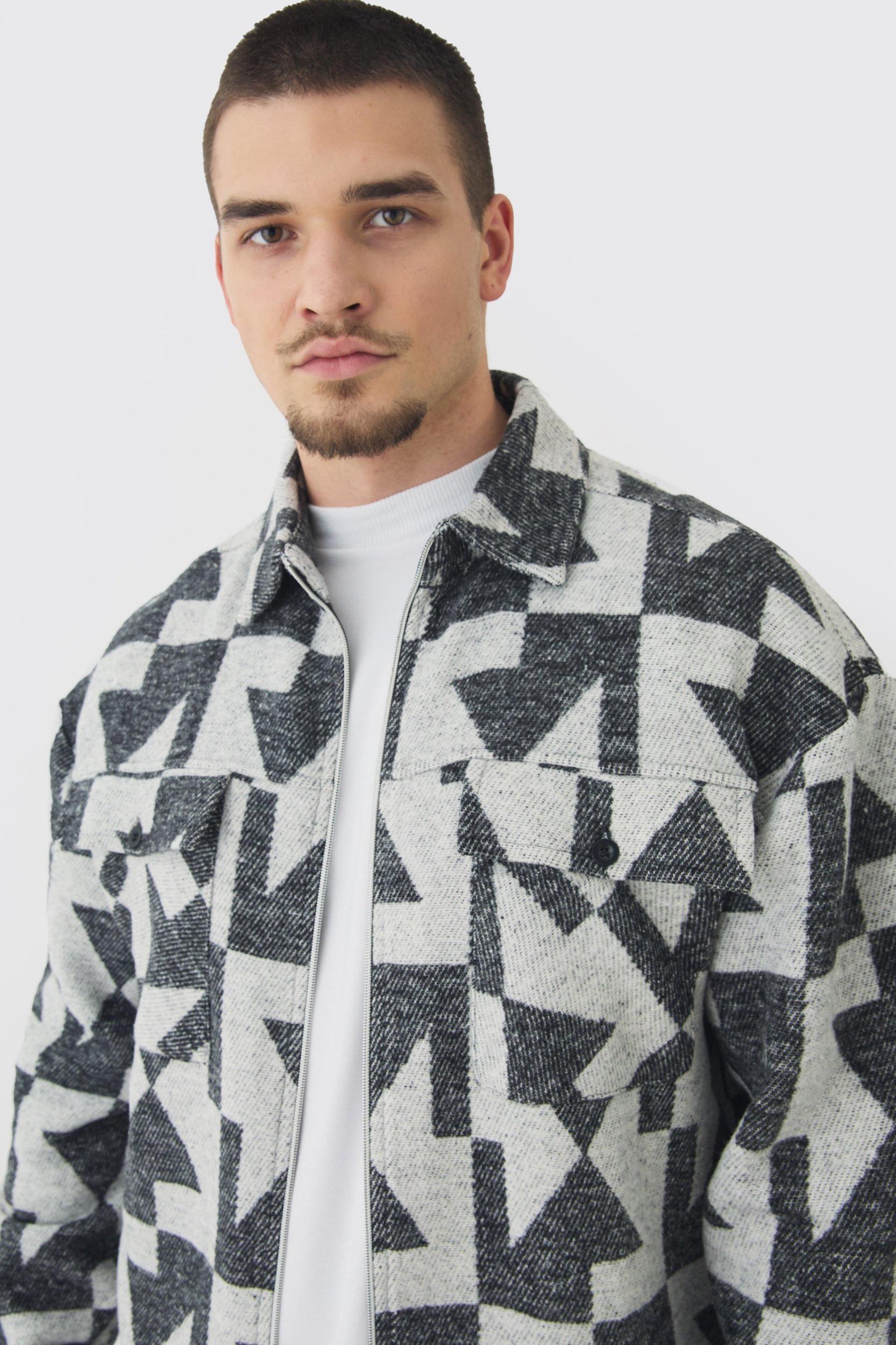 Tall Aztec Print Zip Through Shirt Jacket | boohooMAN USA