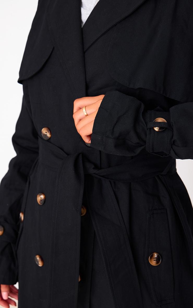 Finish off your look in style with this coat. Featuring a black material with a panel detail and a belted design. Team with a crop top, comfy bottoms and fresh kicks for a chic look we're loving. Length approx 137cm/54inch (Based on a sample size UK 8) Model wears size UK 8/ EU 36/ AUS 8/ US 4Model Height - 5ft 10inchp]:!mb-4inch>Brand: PrettyLittleThingCategory: OuterwearProduct type: TrenchColor: BlackMaterial: Woven CrepeDesign: PlainOccasion: Day
