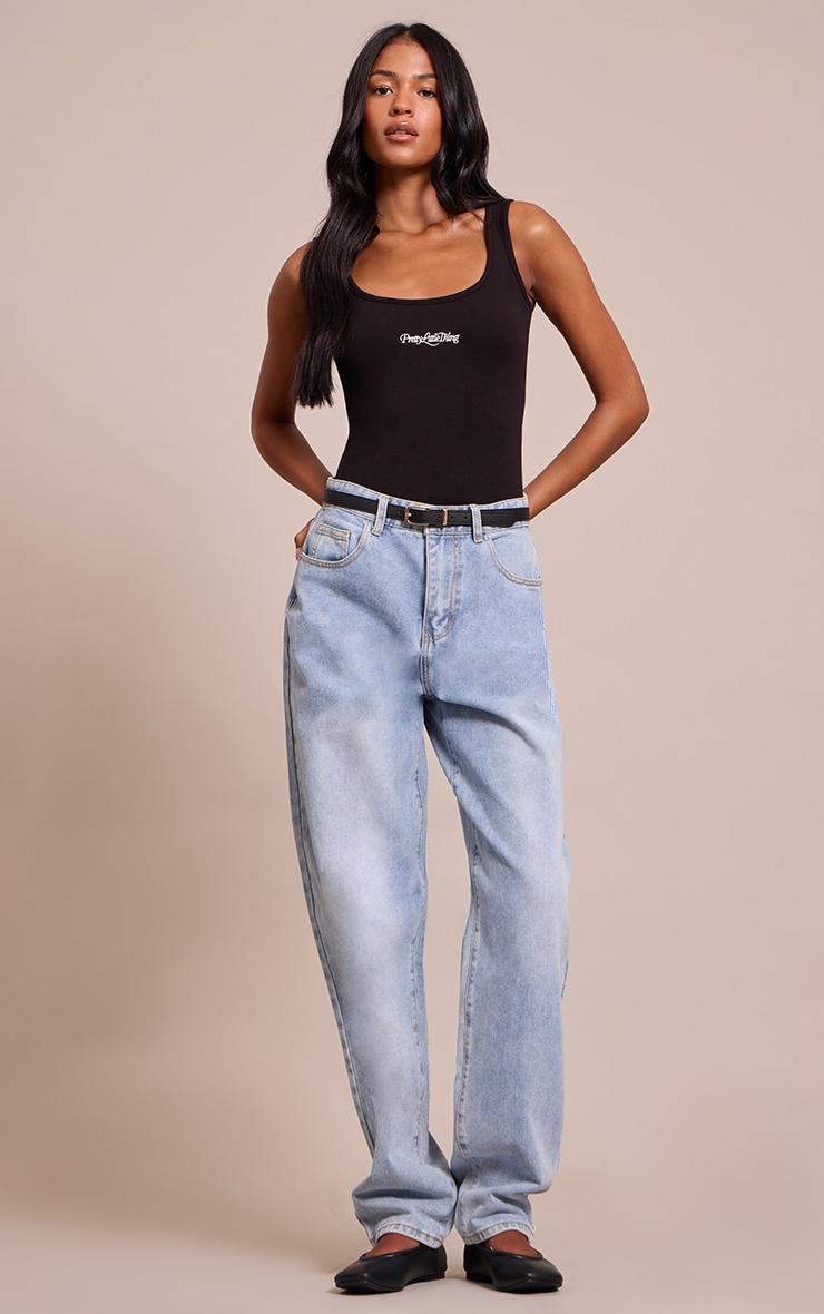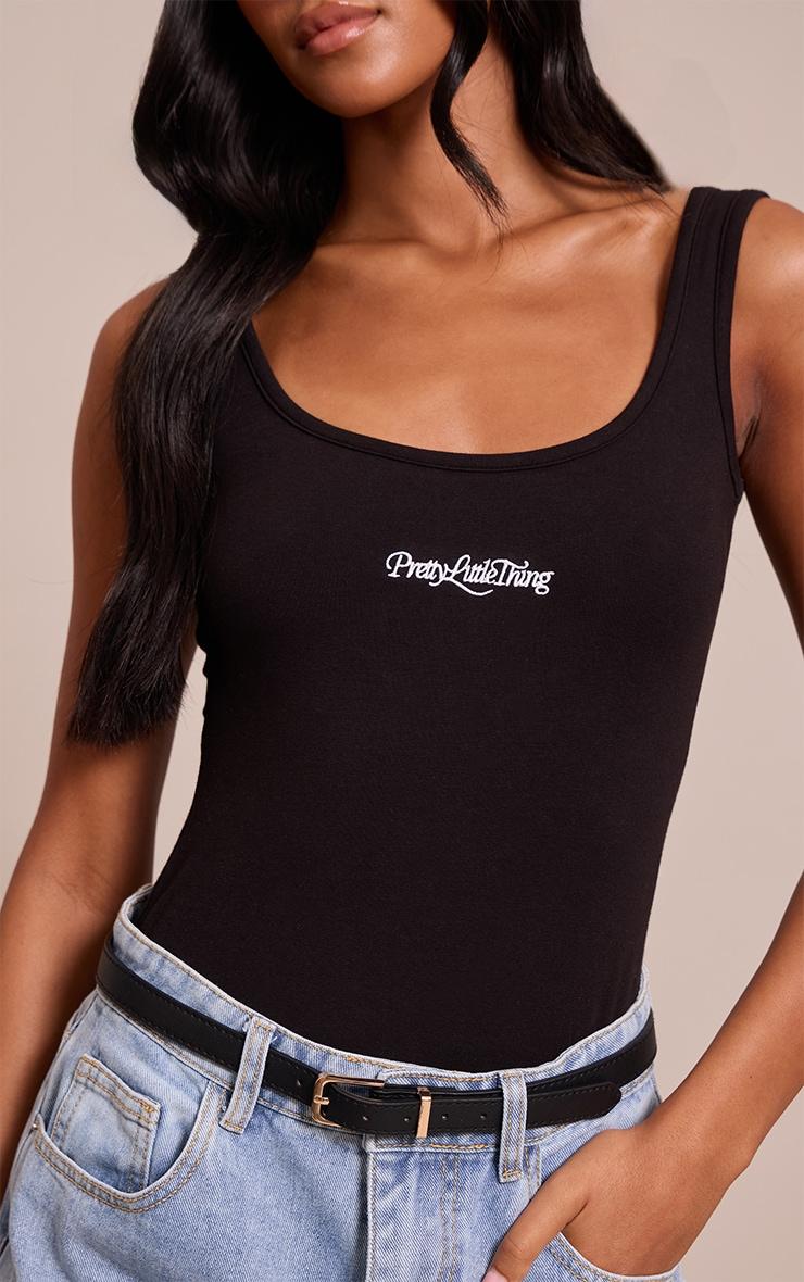 Effortless styling begins with intelligent staples. The tall black prettylittlething scoop neck bodysuit defines this ethos, offering a sleek base for countless outfits. Its classic scoop neckline and streamlined sleeveless design provide a clean, versatile aesthetic, while the subtle 'PrettylittleThing' emblem at the chest adds an authentic touch. Perfect for daywear, this black essential pairs seamlessly with high-waisted jeans and sneakers for an understated edge. Alternatively, elevate it with tailored pants and heels for a refined ensemble that transitions effortlessly.Length approx 71cm/28inch (Based on sample size S)Model wears size SModel Height - 5ft 10inchp]:!mb-4inch>Category: AthleisureProduct type: BodysuitColor: BlackMaterial: Cotton JerseyDesign: PlainOccasion: Day