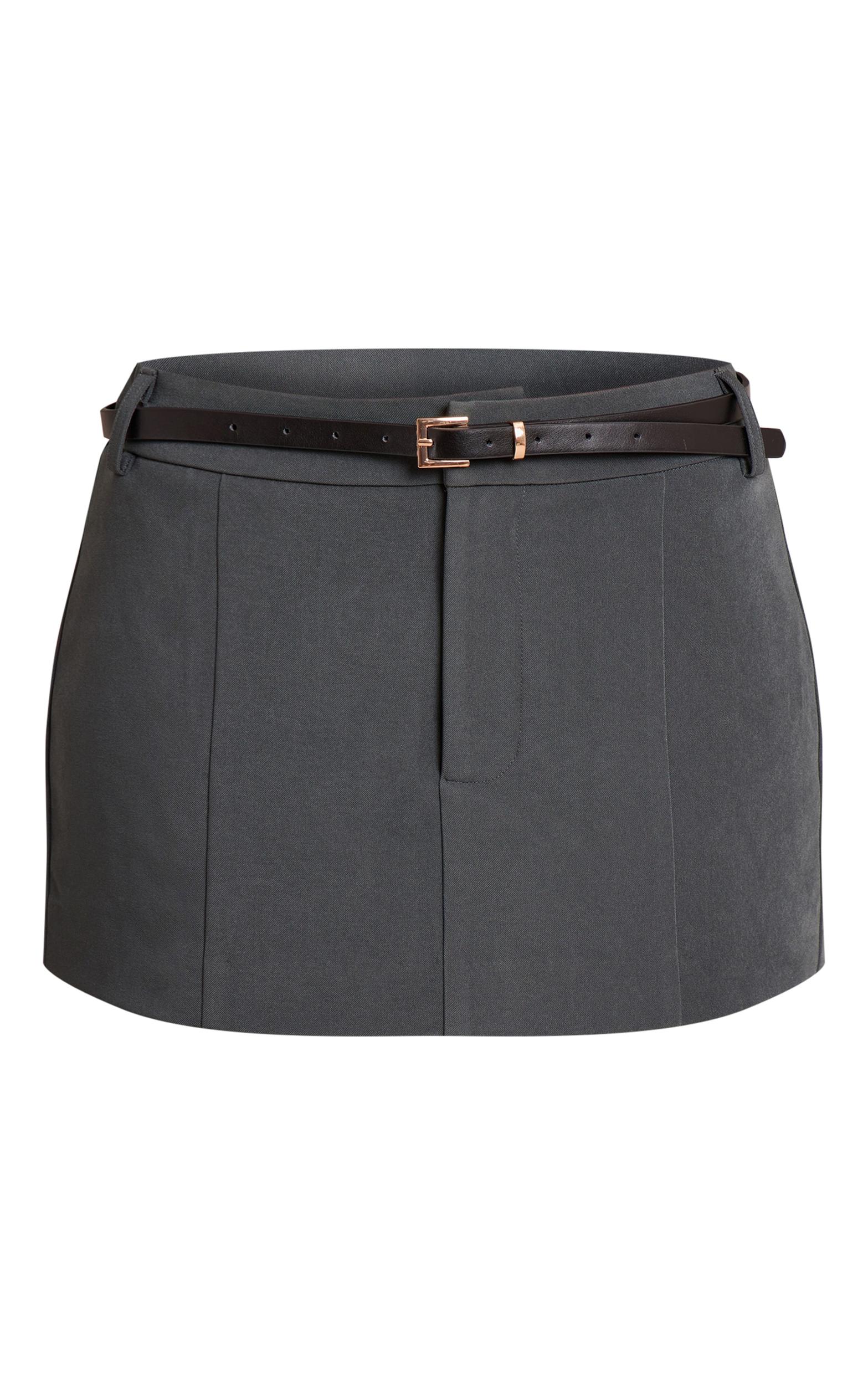 Effortless evening confidence begins with the right foundation. The tall charcoal belt detail pleated skort brings a directional flair to your look with its sleek silhouette, featuring a distinctive wide belt detail at the waist and artful pleating that creates dynamic movement. This charcoal mini, seamlessly blending the polish of a skirt with the practicality of shorts, is designed for a commanding evening agenda. Pair it with a sharp, fitted black blouse and sophisticated kitten heels to truly own your presence. Complete your refined aesthetic with a minimalist clutch bag, affirming an undeniable impact.Length approx 38cm/15inch (Based on sample size US 4)Model wears size UK 8/ EU 36/ AUS 8/ US 4Model Height - 5ft 10inchp]:!mb-4inch>Brand: PrettyLittleThingCategory: BottomsProduct type: Mini SkirtColor: CharcoalMaterial: Tailored WovenOccasion: Evening