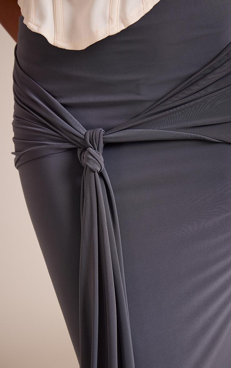 Add subtle drama with the tall charcoal slinky knot detail maxi skirt. The slinky fabric drapes beautifully while the knot detail defines the silhouette. Pair with a fitted knit top and ankle boots for city chic, or style with heels and a cami top for evening glam.Length approx 117cm/46inch (Based on sample size US 4)Model wears size UK 8/ EU 36/ AUS 8/ US 4Model Height - 5ft 10inchp]:!mb-4inch>Brand: PrettyLittleThingCategory: BottomsProduct type: Maxi SkirtColor: CharcoalMaterial: Slinky JerseyOccasion: Evening