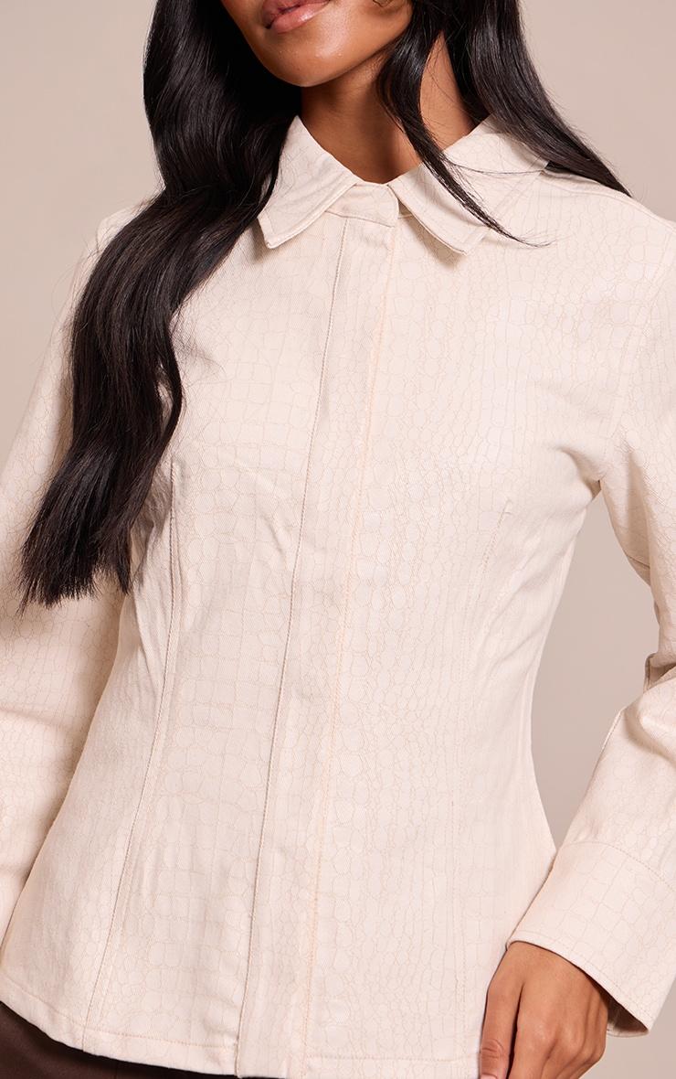 Update your layers with the tall cream snake print coated cinched denim shirt. Designed in coated denim with a statement snake print and cinched waist, it’s a versatile wardrobe hero. Style with high-rise jeans and heels for a confident edit.Length approx 63.5cm/25inch (Based on sample size US 4)Model wears size UK 8/ EU 36/ AUS 8/ US 4Model Height - 5ft 10inchp]:!mb-4inch>Brand: PrettyLittleThingCategory: DenimProduct type: Denim ShirtColor: CreamMaterial: Rigid DenimDesign: PrintNeckline: ShirtSleeves: LongOccasion: Day