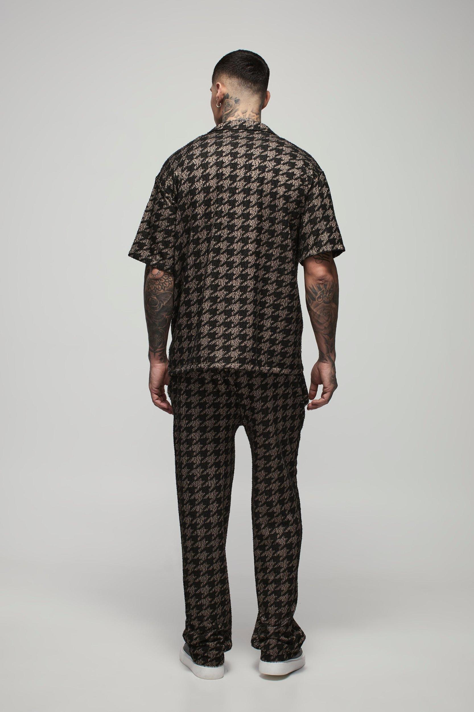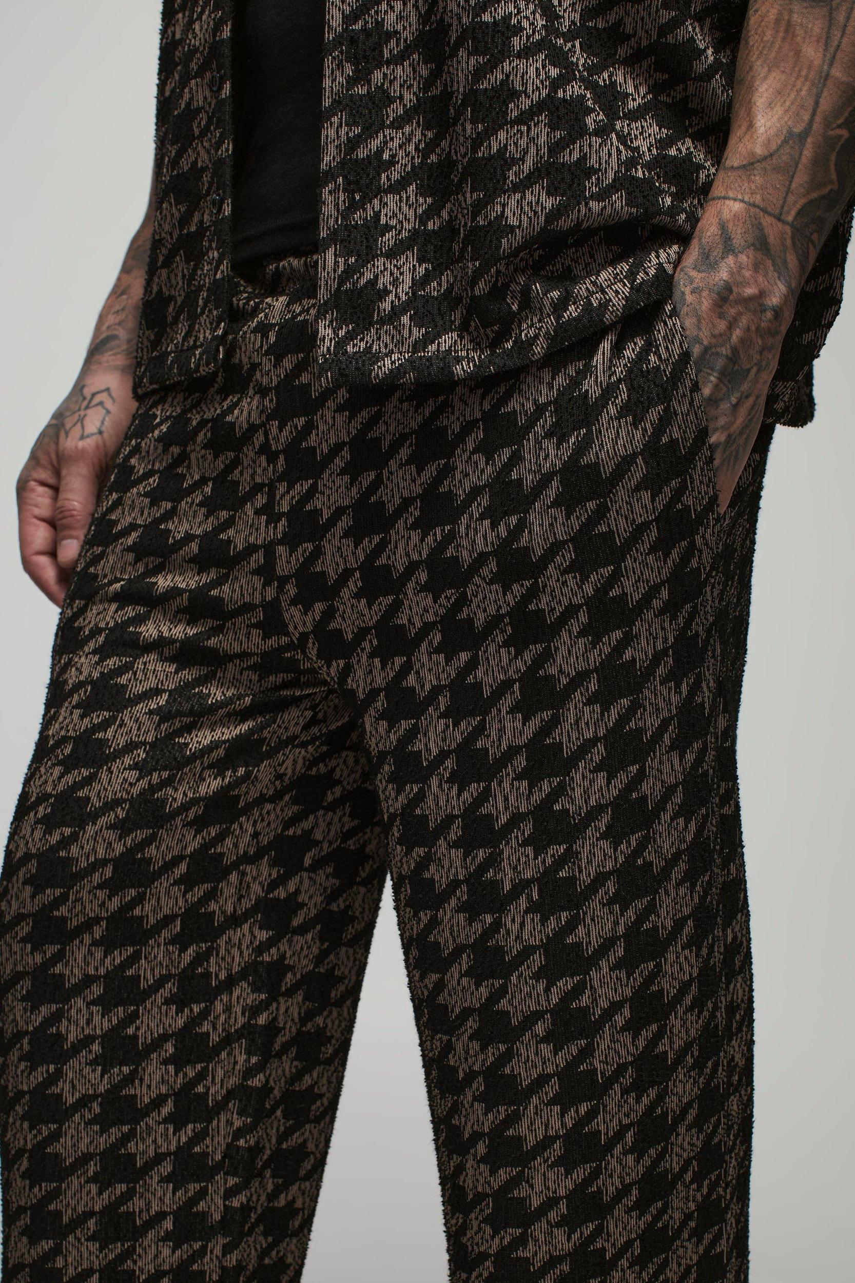 Tall Dogtooth Boucle Relaxed Pants | boohooMAN USA