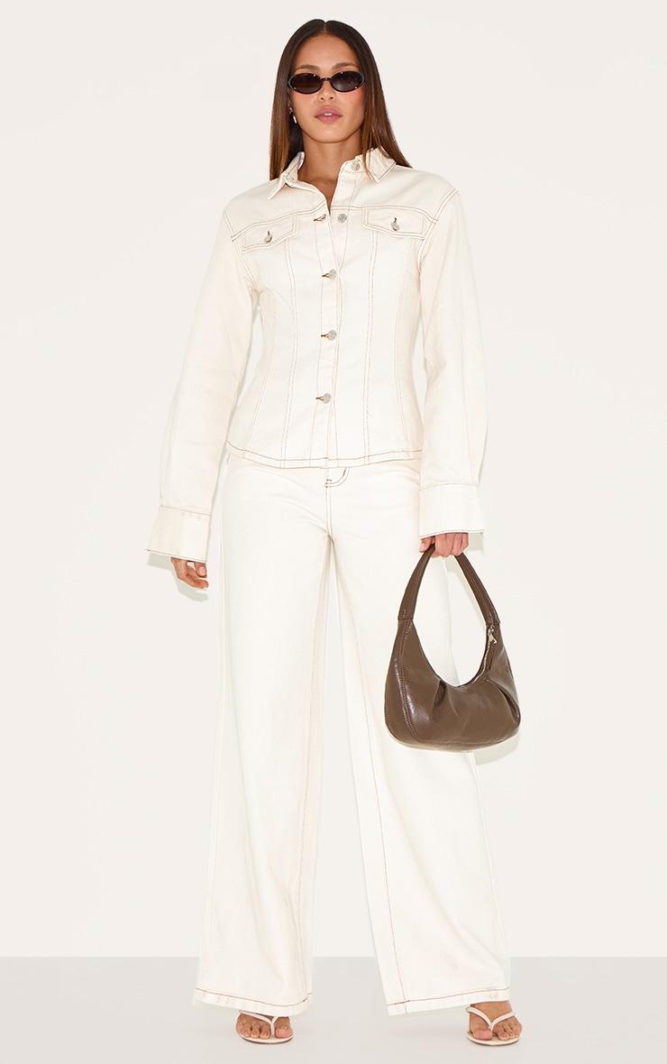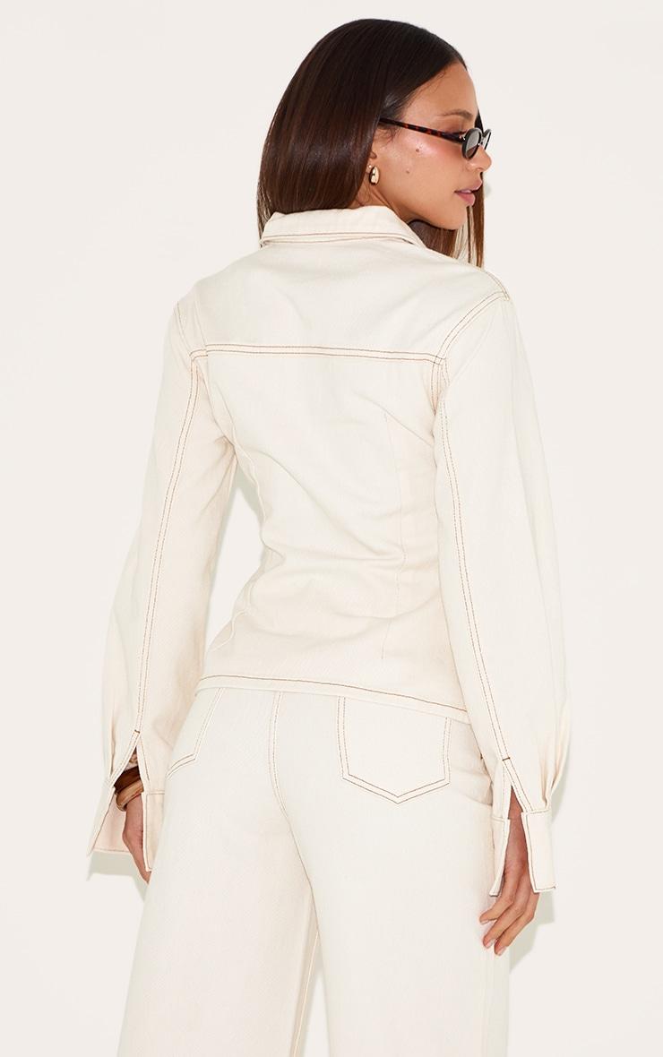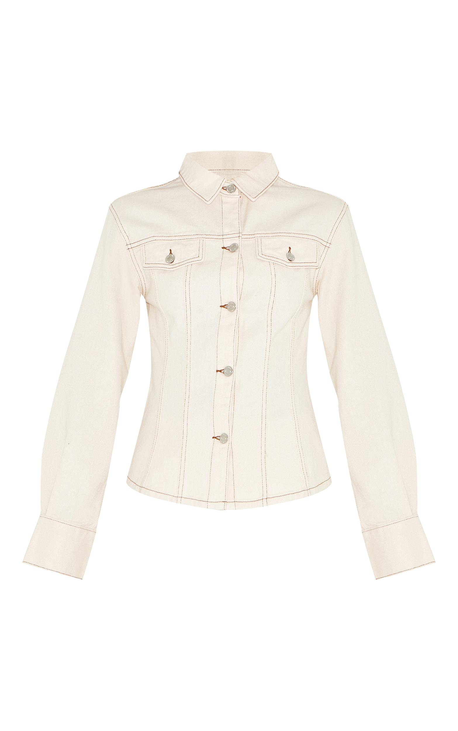 For timeless appeal with a modern twist, you need this tall ecru long sleeve cinched denim shirt. Tailored from pale denim, this shirt features classic button fastenings with a structural collar. Elevate your look by teaming it with the matching pants, sleek sunglasses, a tonal bag and your favorite strappy heels. Length approx 63.5cm/25inch (Based on sample size US 4)Model wears size UK 8/ EU 36/ AUS 8/ US 4Model Height - 5ft 10inchp]:!mb-4inch>Brand: PrettyLittleThingCategory: DenimProduct type: Denim ShirtColor: EcruMaterial: Rigid DenimNeckline: ShirtSleeves: LongOccasion: Day