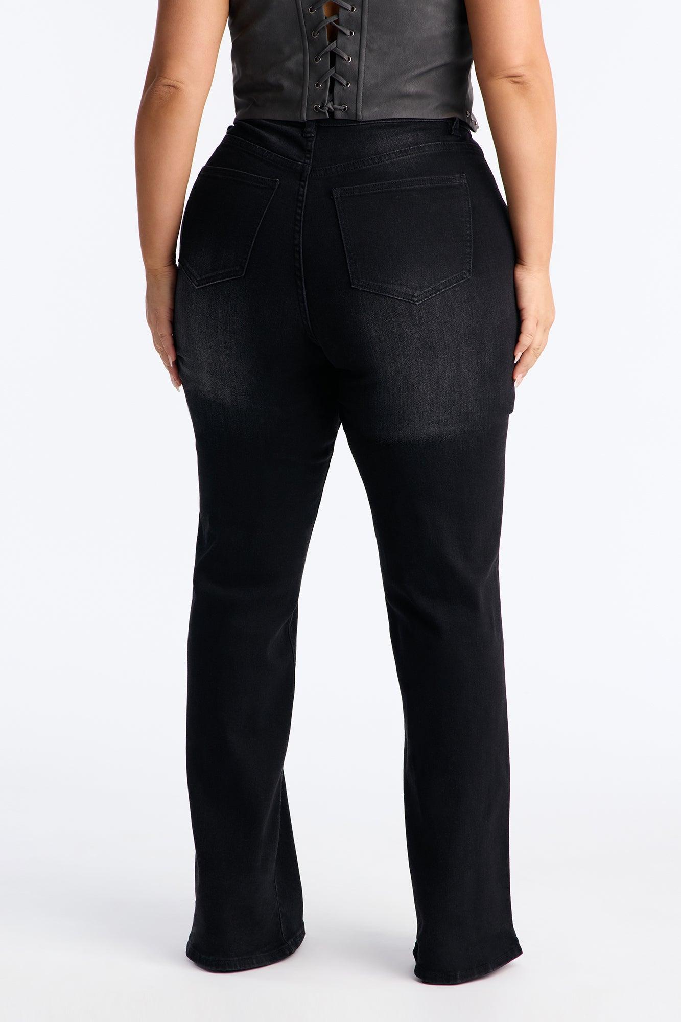 Available In Black. Available in Petite 31” Inseam, Regular 34" Inseam, & Tall 37" Inseam. Straight Leg Jean 5 Pocket 11" High Rise Medium Stretch Disclaimer: Due To The Specialized Wash, Each Garment Is Unique. 85% Cotton 12% Polyester 2.5% Spandex 0.5% Viscose Imported California Proposition 65WARNING: Cancer and Reproductive Harm - www.P65Warnings.ca.gov.