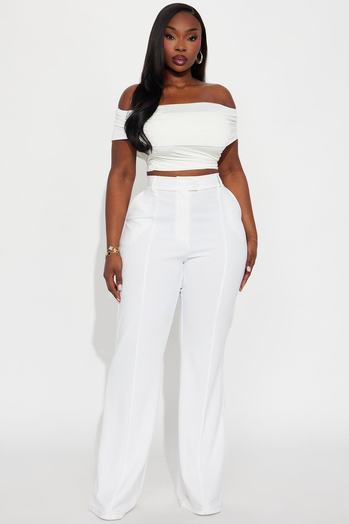 Available In Black, Burgundy, Charcoal, Chocolate, Fuchsia, Hunter, Ivory, Navy, Olive, Red, Royal, Rust, Taupe And White. Trouser Pant Button And Zip Closure High Rise Crepe Knit Tall Inseam 36" Stretch Self: 95% Polyester 5% Spandex Imported