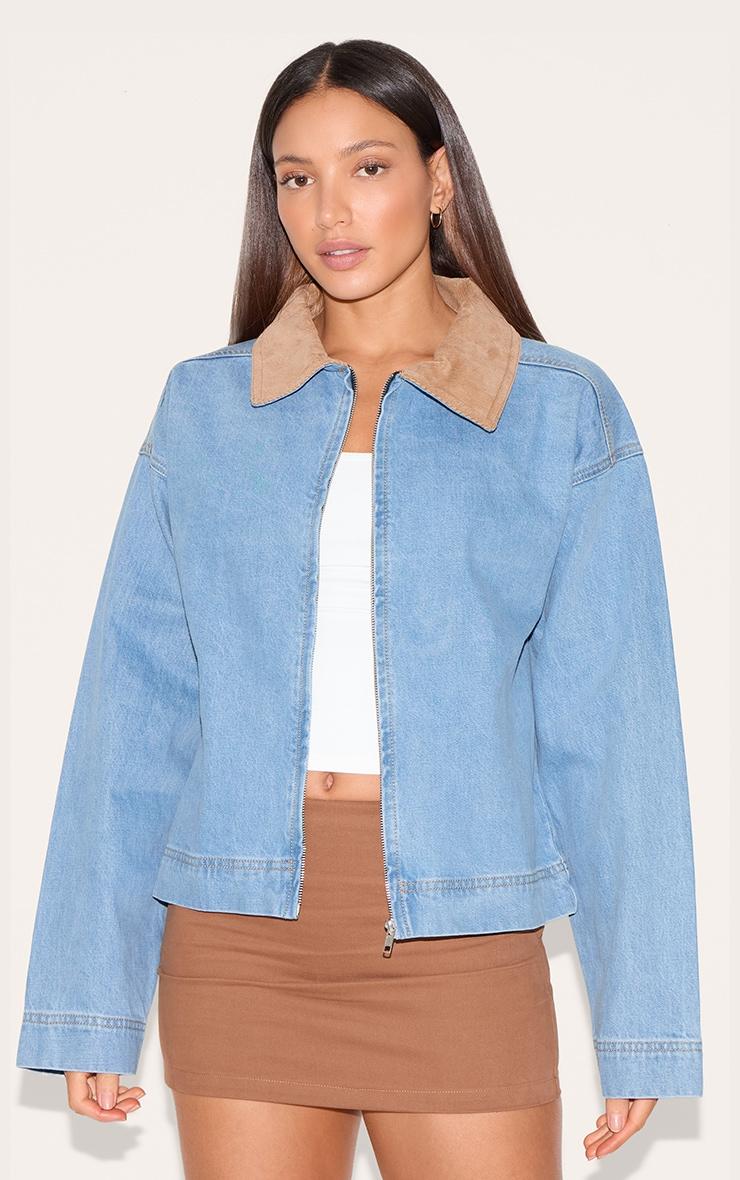 Brought to you in a mid blue wash denim material with a suede collar and a bomber design. Team this tall mid blue wash suede collar denim bomber jacket with a mini skirt and a basic t-shirt to elevat eyour outfit.Length approx 63.5cm/25inch (Based on sample size US 4)Model wears size UK 8/ EU 36/ AUS 8/ US 4Model Height - 5ft 10inchp]:!mb-4inch>Brand: PrettyLittleThingCategory: DenimProduct type: Denim JacketColor: Mid Blue WashMaterial: Rigid DenimDesign: PlainSleeves: LongOccasion: Day