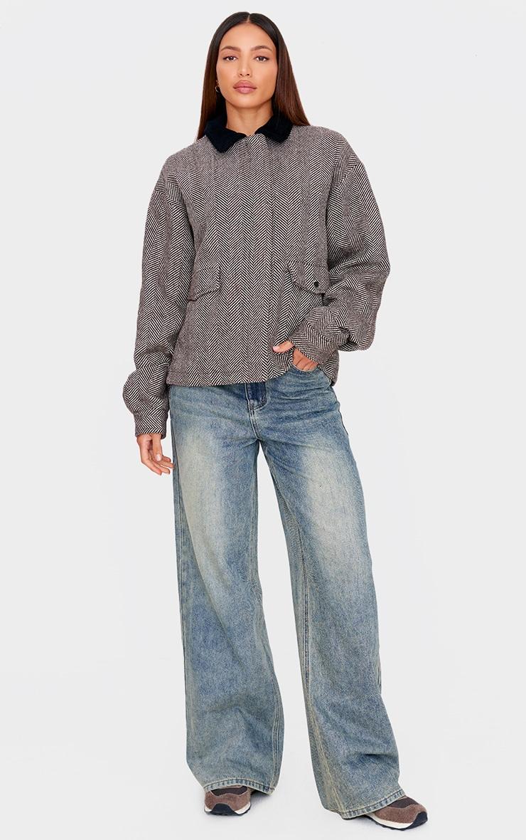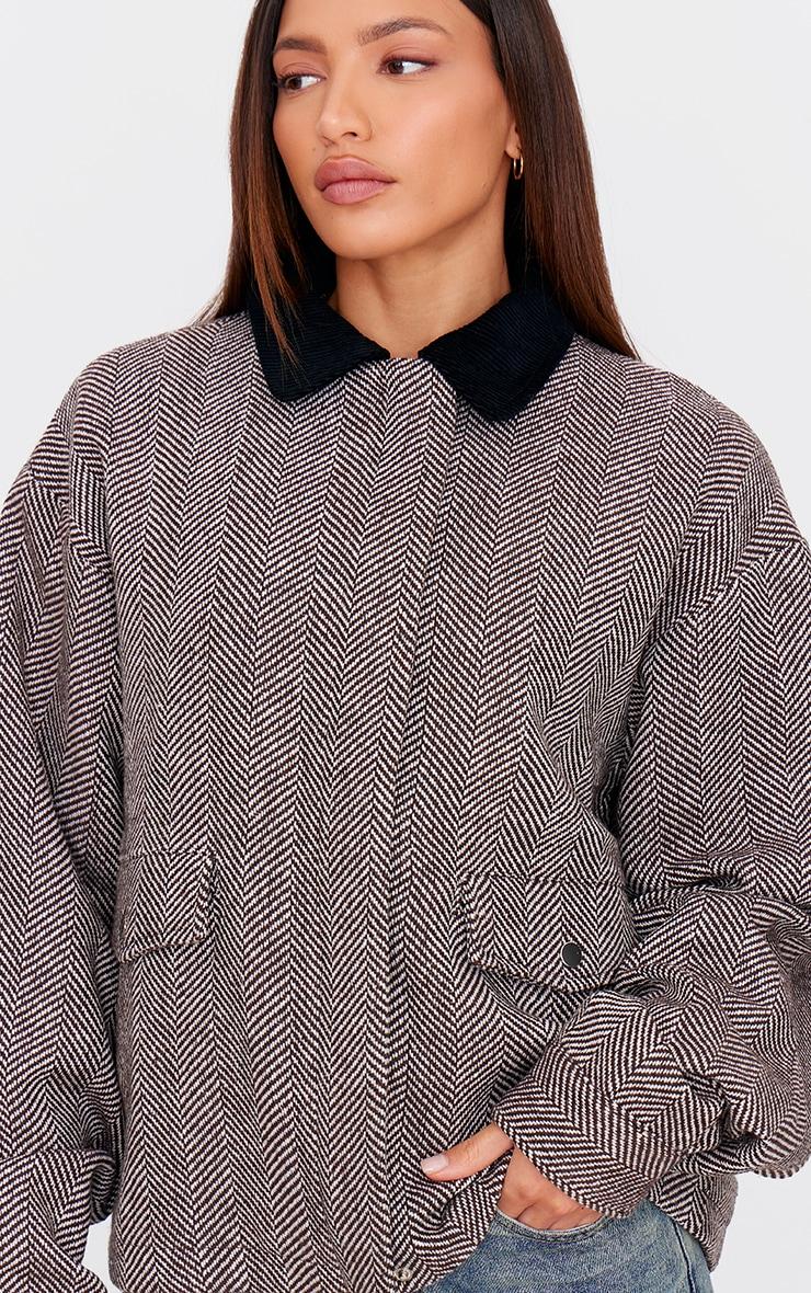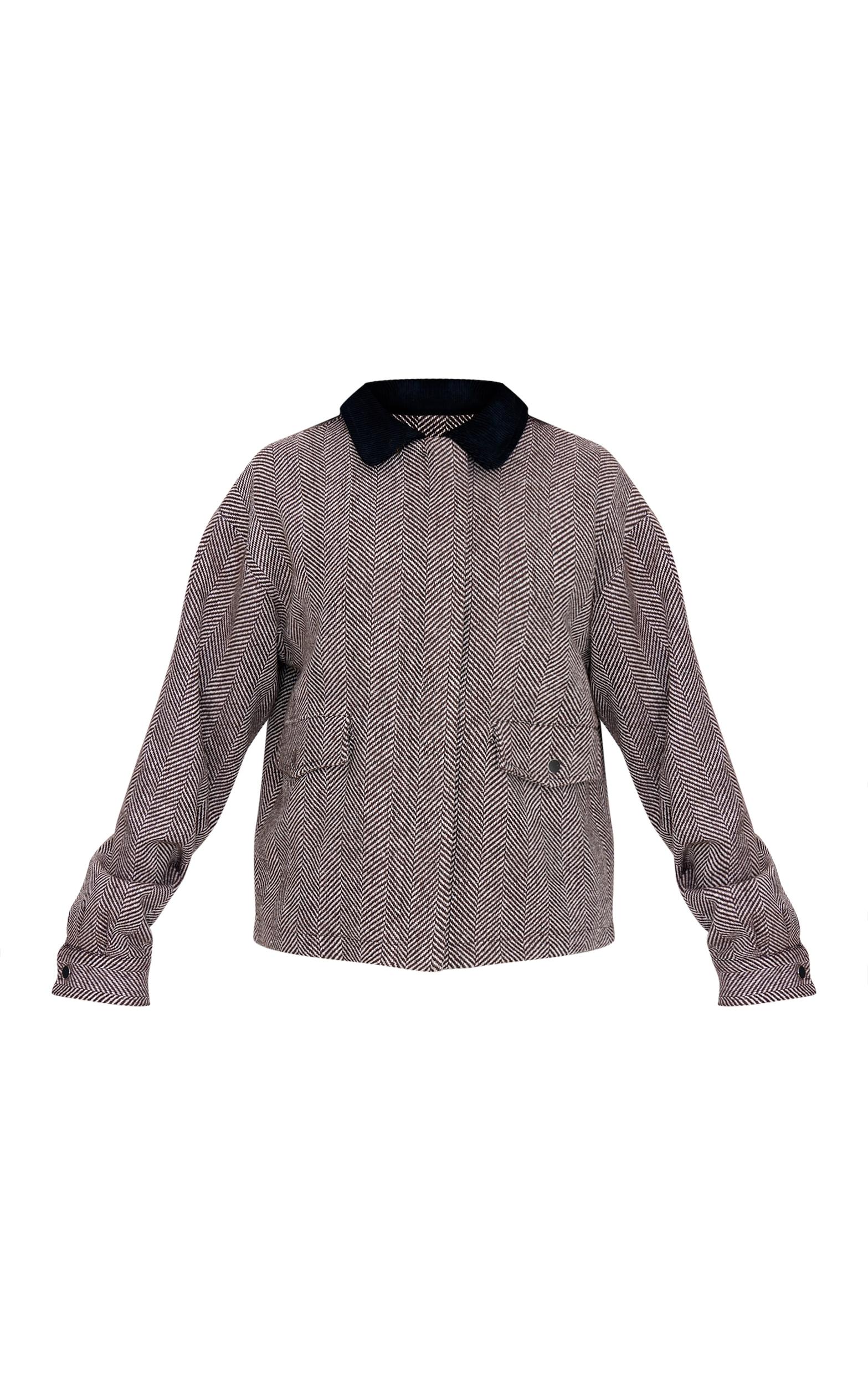 Elevate your outerwear edit with this herringbone jacket, a masterclass in monochrome dressing. The contrast collar sharpens the silhouette, offering a modern update to a timeless print. The tailoring provides a refined structure, perfect for layering. Style it with tailored pants from our collection for a considered, confident ensemble. Length approx 63.5cm/25inch (Based on a sample size UK 8) Model wears size UK 8/ EU 36/ AUS 8/ US 4Model Height - 5ft 10inchp]:!mb-4inch>Brand: PrettyLittleThingCategory: OuterwearProduct type: BomberColor: MonochromeMaterial: FleeceOccasion: Day