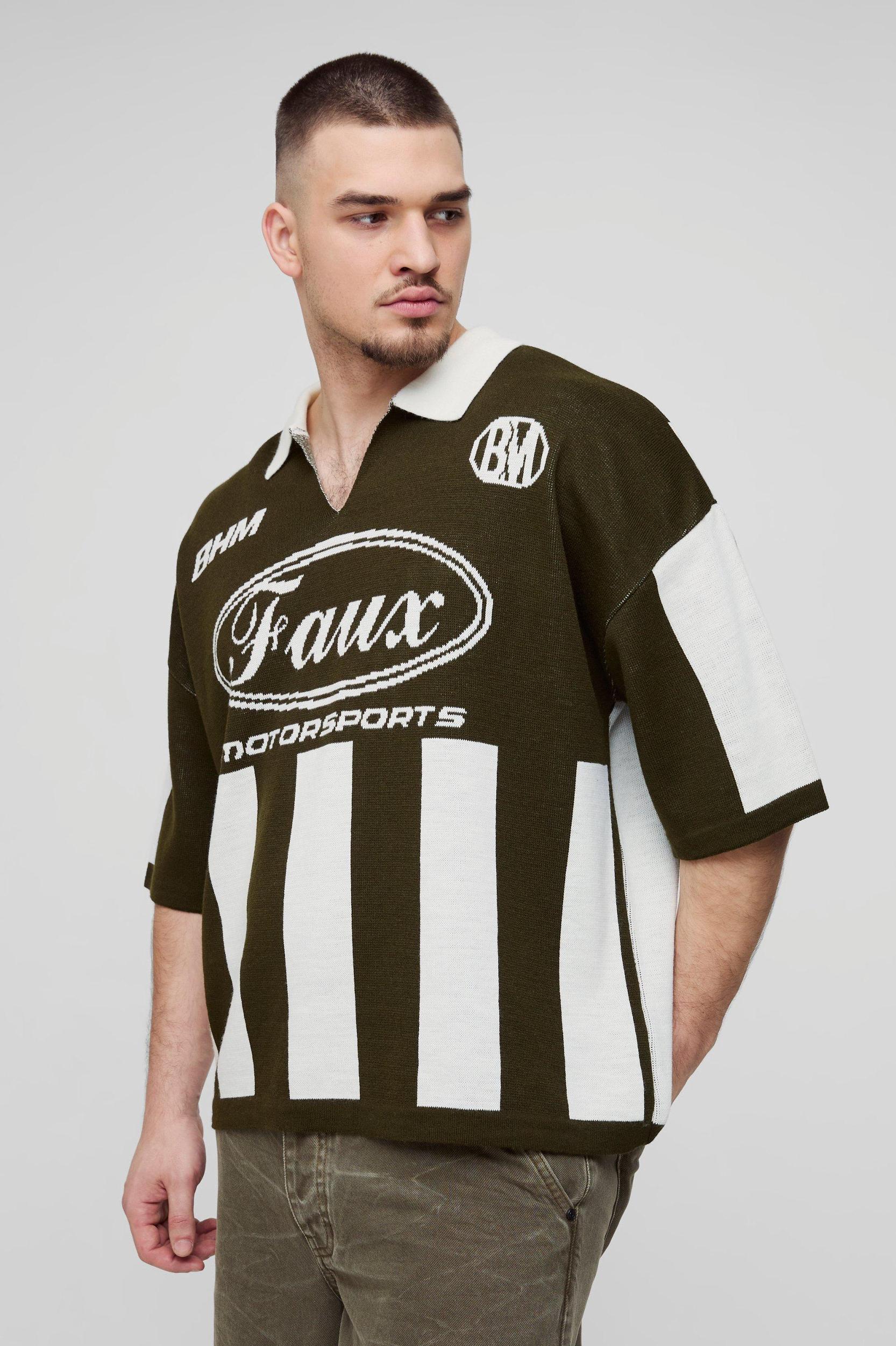 Tall Oversized Boxy Football Knitted Polo | boohooMAN USA