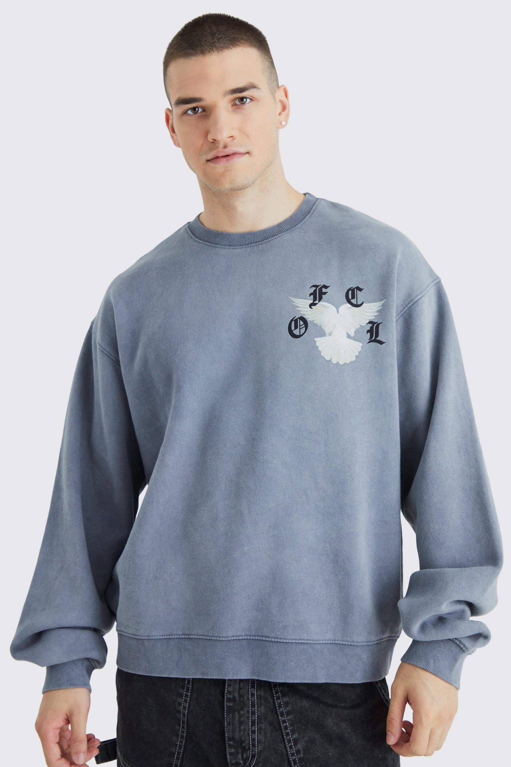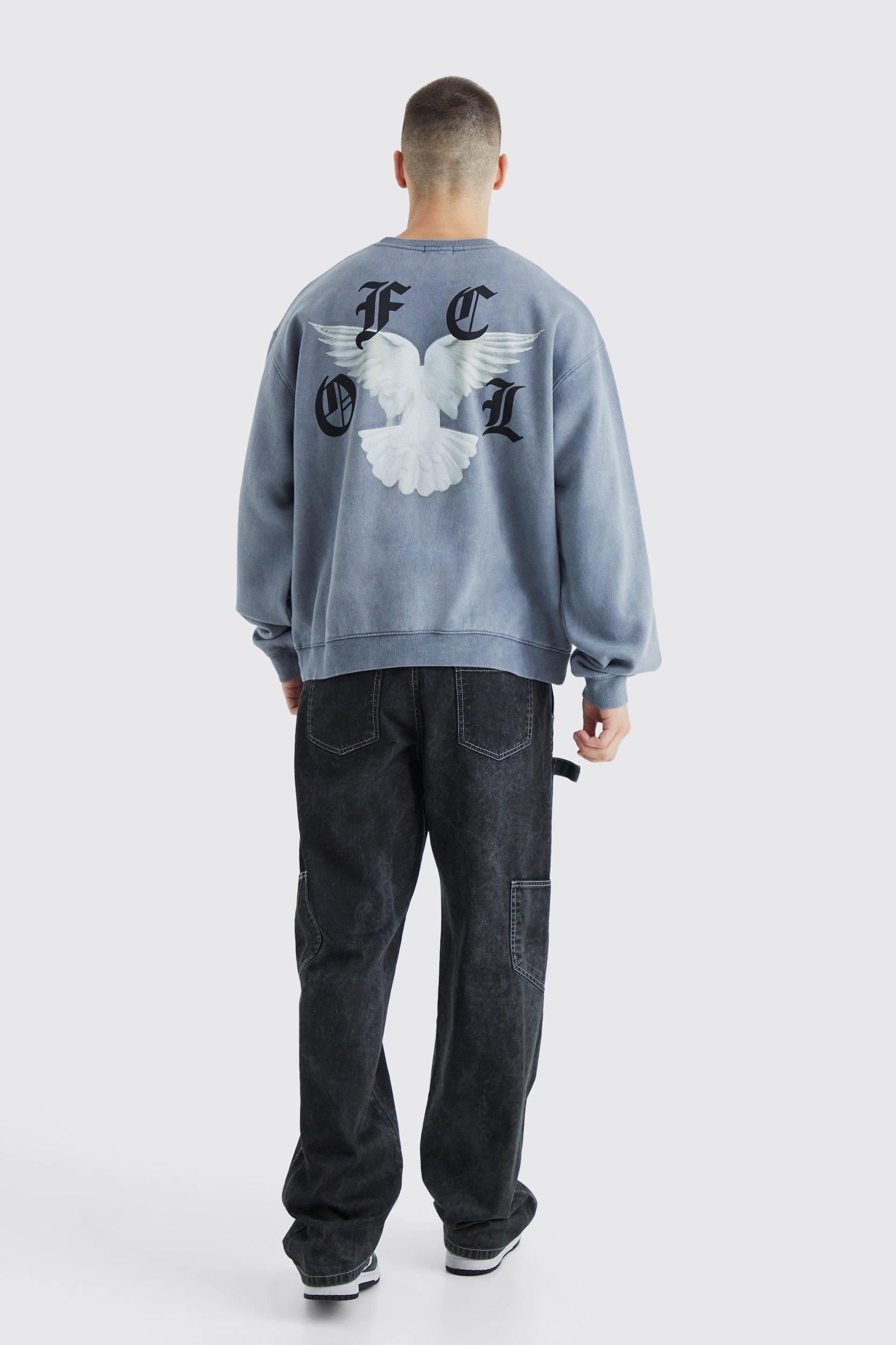 Box your basics. Hoodies are essential for boxing those clean, comfortable layers. Hoodies work as a classic mid-layer or a standalone everyday basic when the weather is a little bit warmer. When you want a minimal colourway to effortlessly complement your ‘fit, choosing a hoodie is always a solid option. Hoodies always look good, whether you’re on a pullover scene or you rate a zip fasten. Wear your hoodie under a coat or jacket for a minimal daily look or combine with jeans & white trainers for a breezy casual vibe.Style: Printed SweatshirtDesign: GraphicFabric: JerseyDetail: OversizedLength: CroppedNeckline: CrewWash: AcidSleeve Length: Long Sleeve