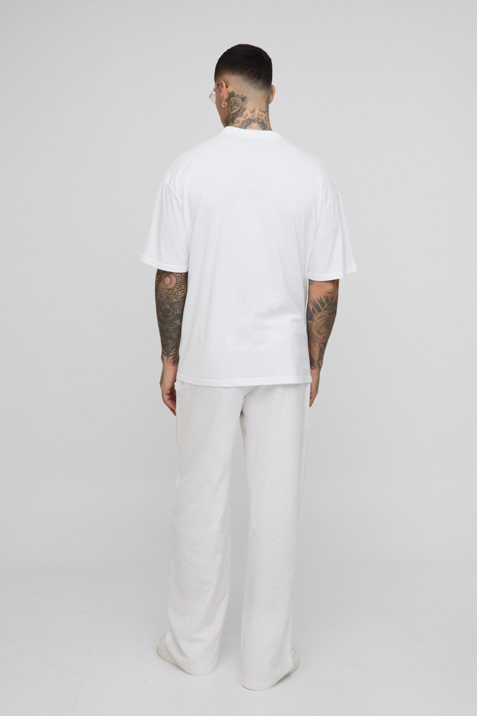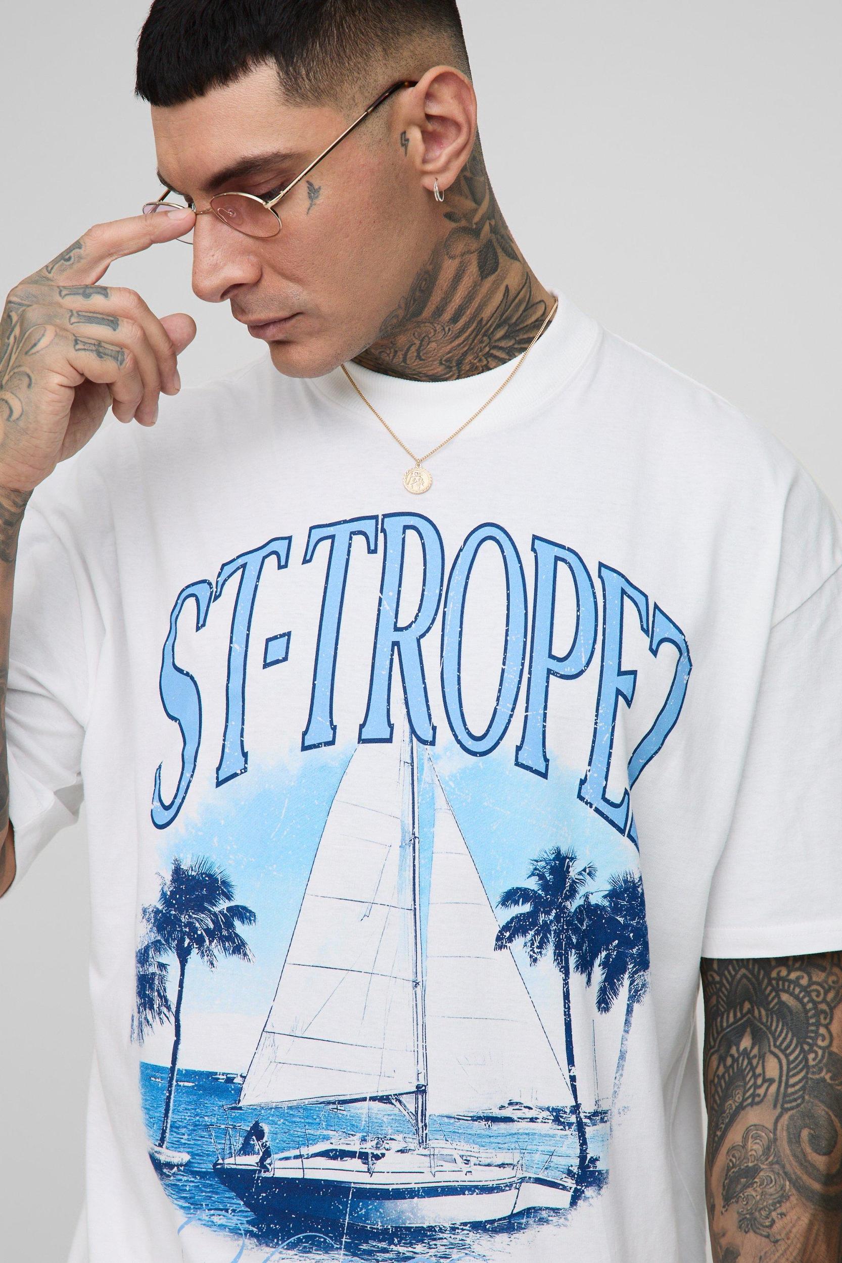 Tall Oversized Extended Neck St. Tropez Landscape Print T-Shirt | boohooMAN USA