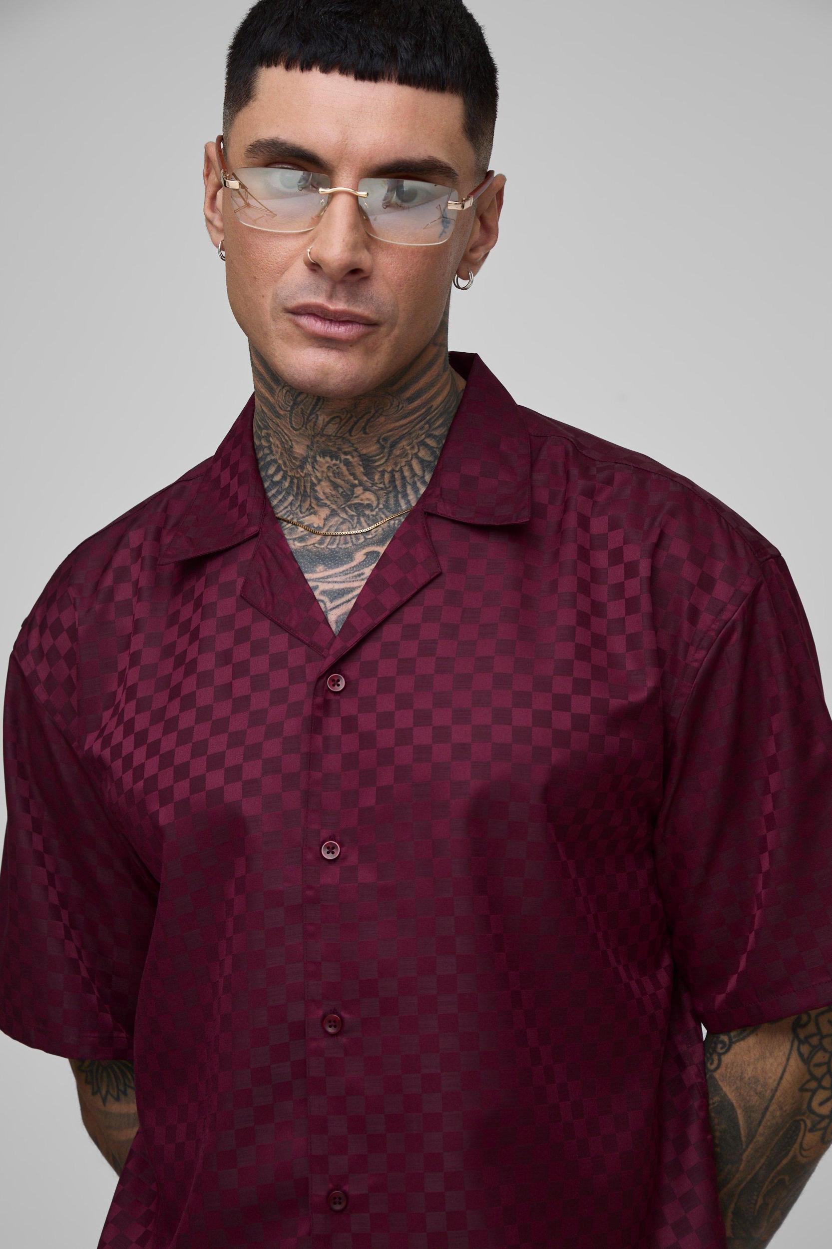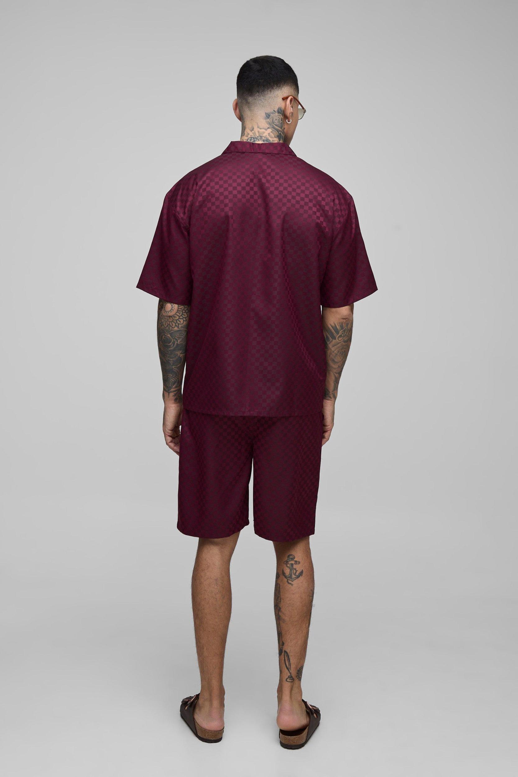 Tall Oversized Revere Satin Checkerboard Shirt & Relaxed Short Set | boohooMAN USA
