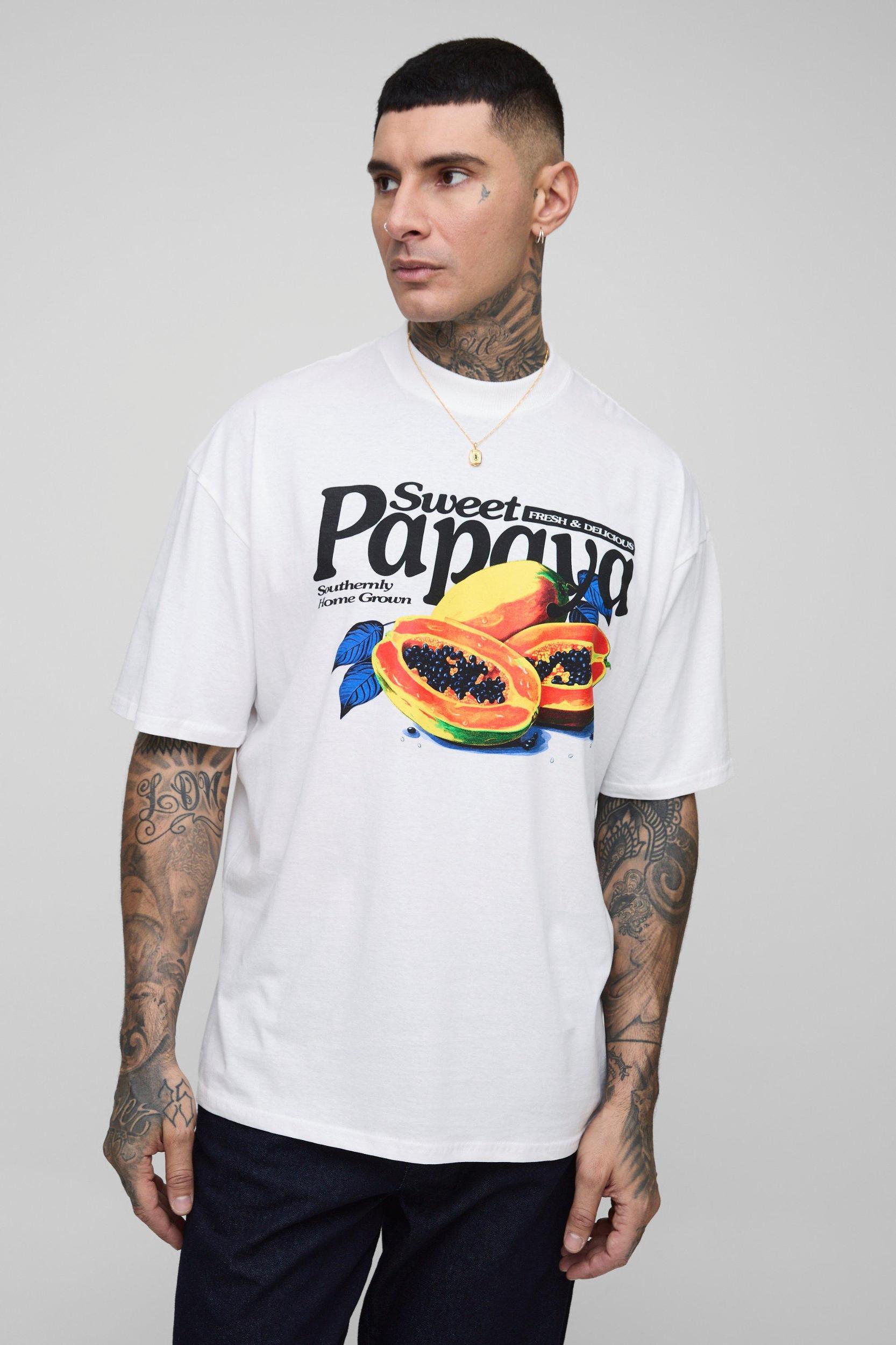 Tall Oversized Sweet Papaya Printed T-Shirt | boohooMAN USA