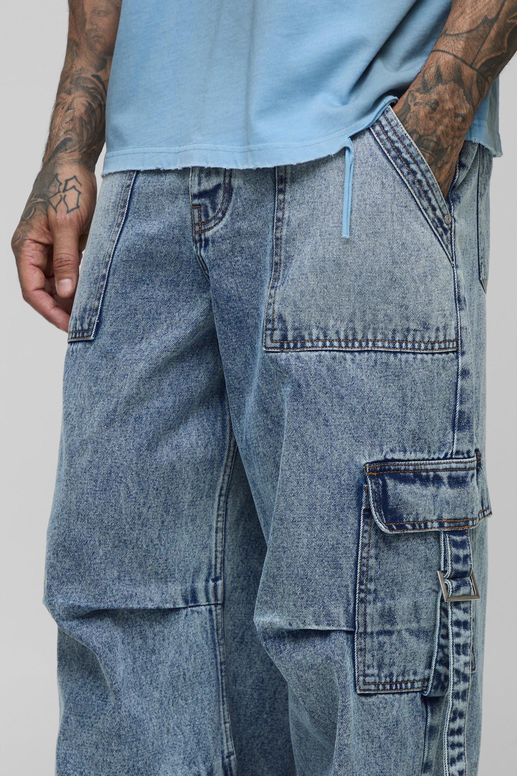Tall Pleat Parachute Cargo Jeans | boohooMAN USA Product Image