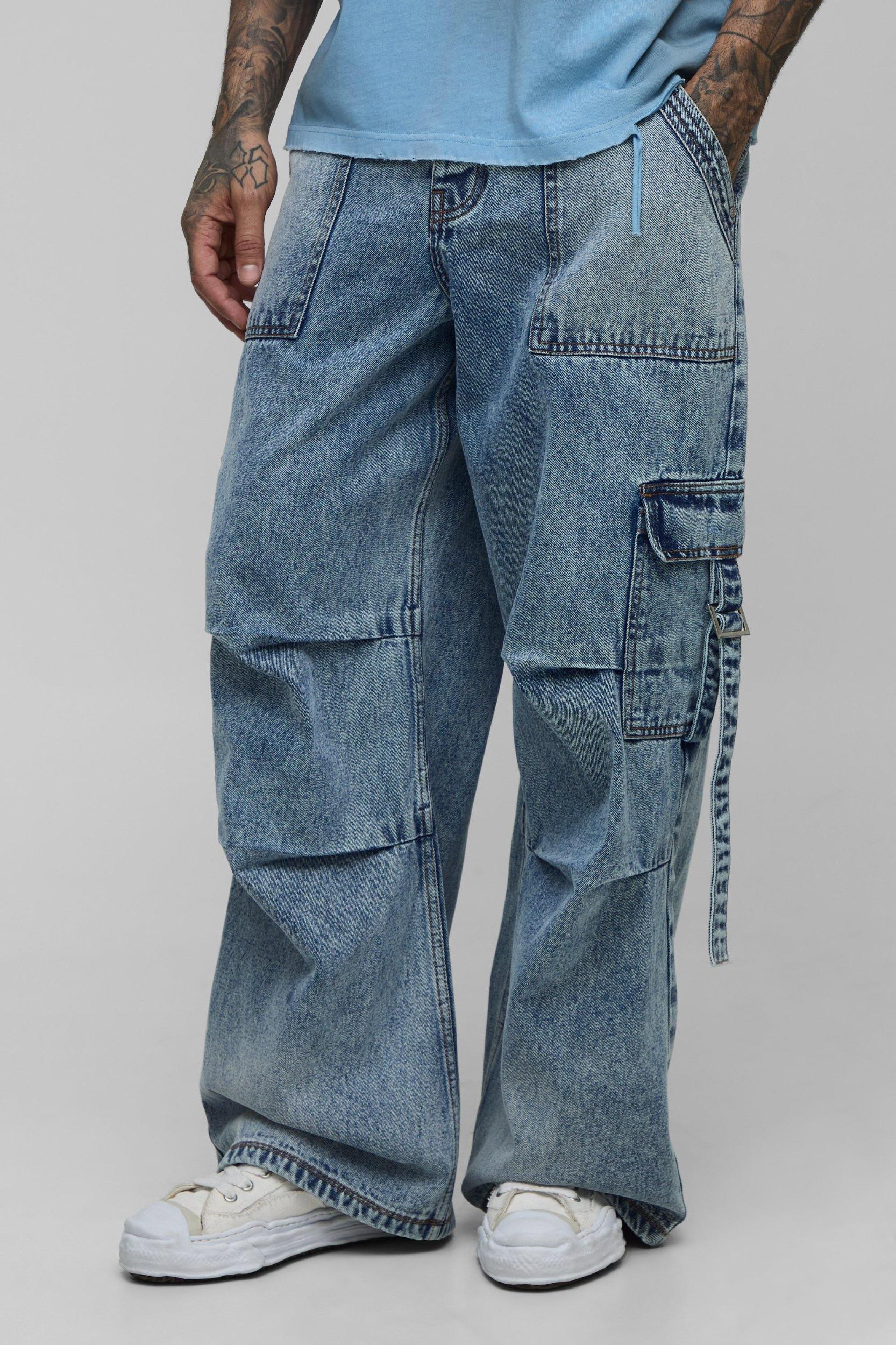 Tall Pleat Parachute Cargo Jeans | boohooMAN USA