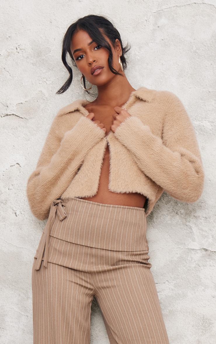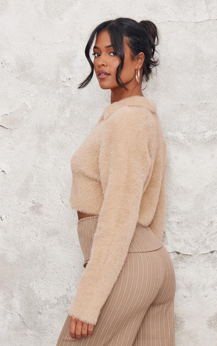 This tall stone brushed knit collared cropped sweater is a must-have for your new season wardrobe. Brought to you in a neutral stone shade, with a cosy brushed knit material, a collared design and cropped finish. Style with some stone wide leg pants and silver accessories for a chic finish. Length approx 37cm/14.5inch (Based on a sample size S) Model wears size SModel Height - 5ft 10inchp]:!mb-0inch>Category: KnitwearProduct type: SweaterColor: StoneMaterial: Cable KnitDesign: PlainNeckline: V NeckSleeves: LongOccasion: Day