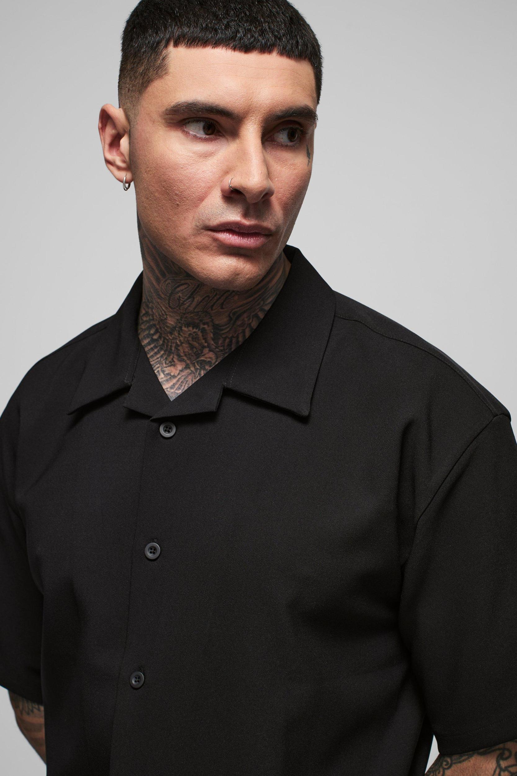 Tall Stretch Woven Boxy Revere Shirt | boohooMAN USA