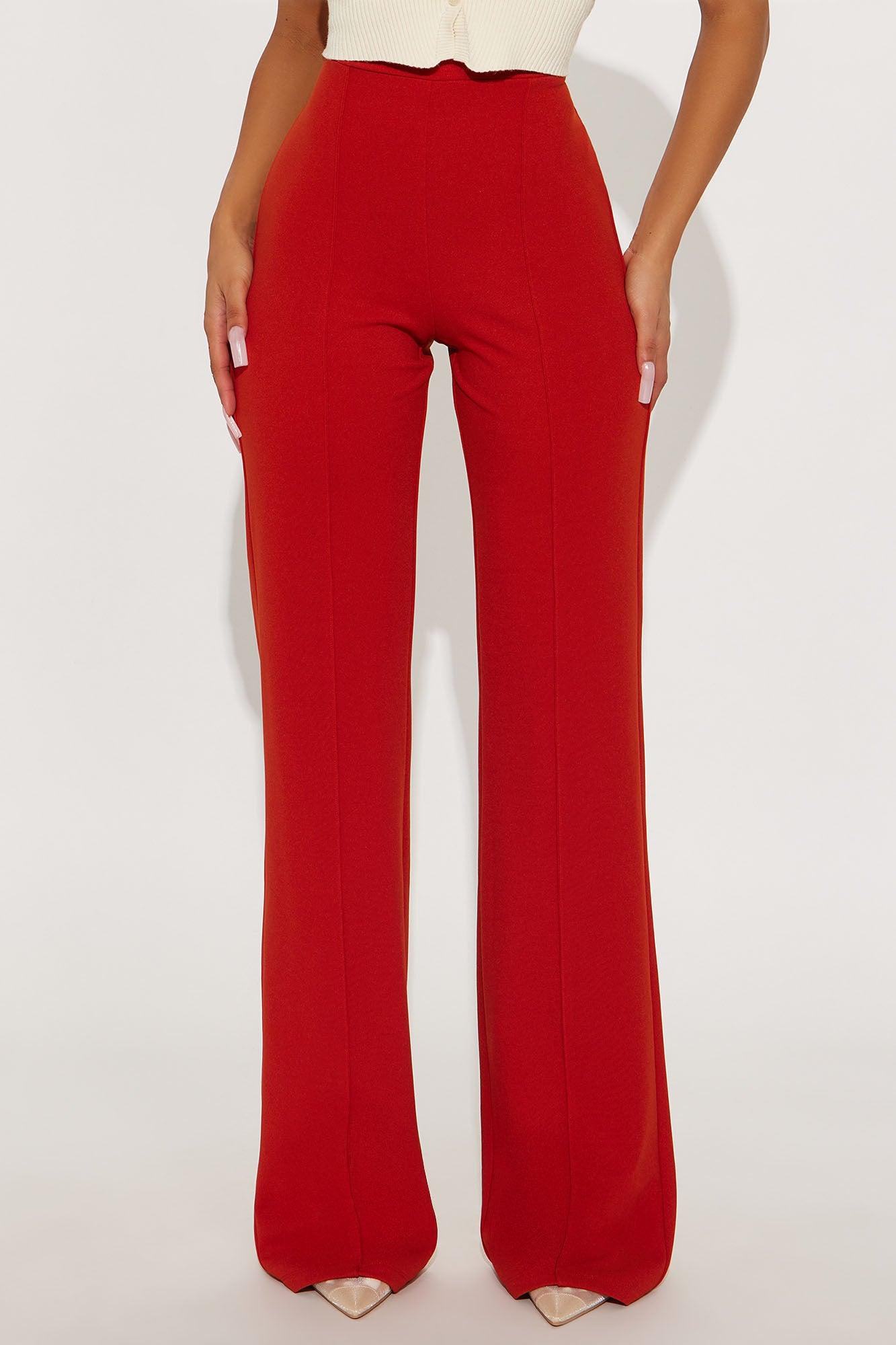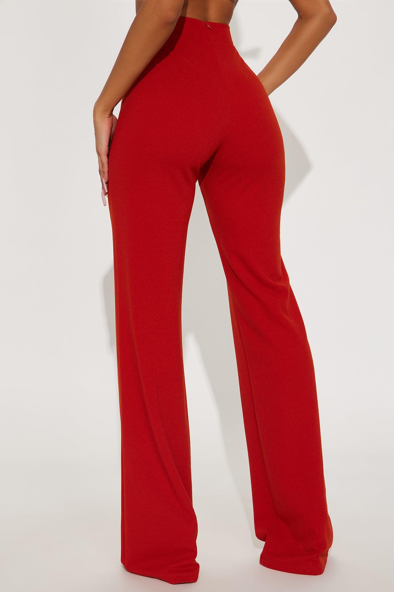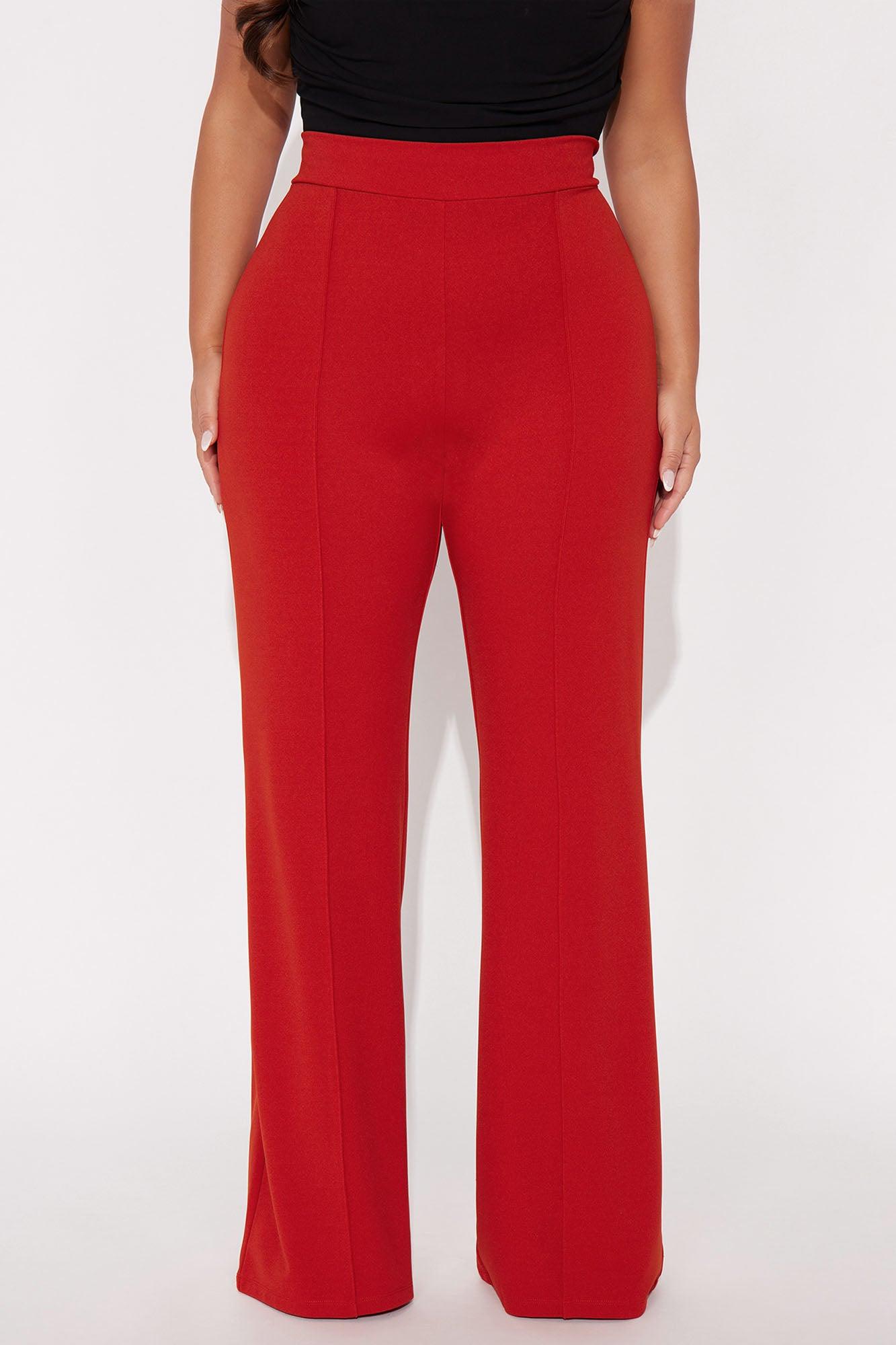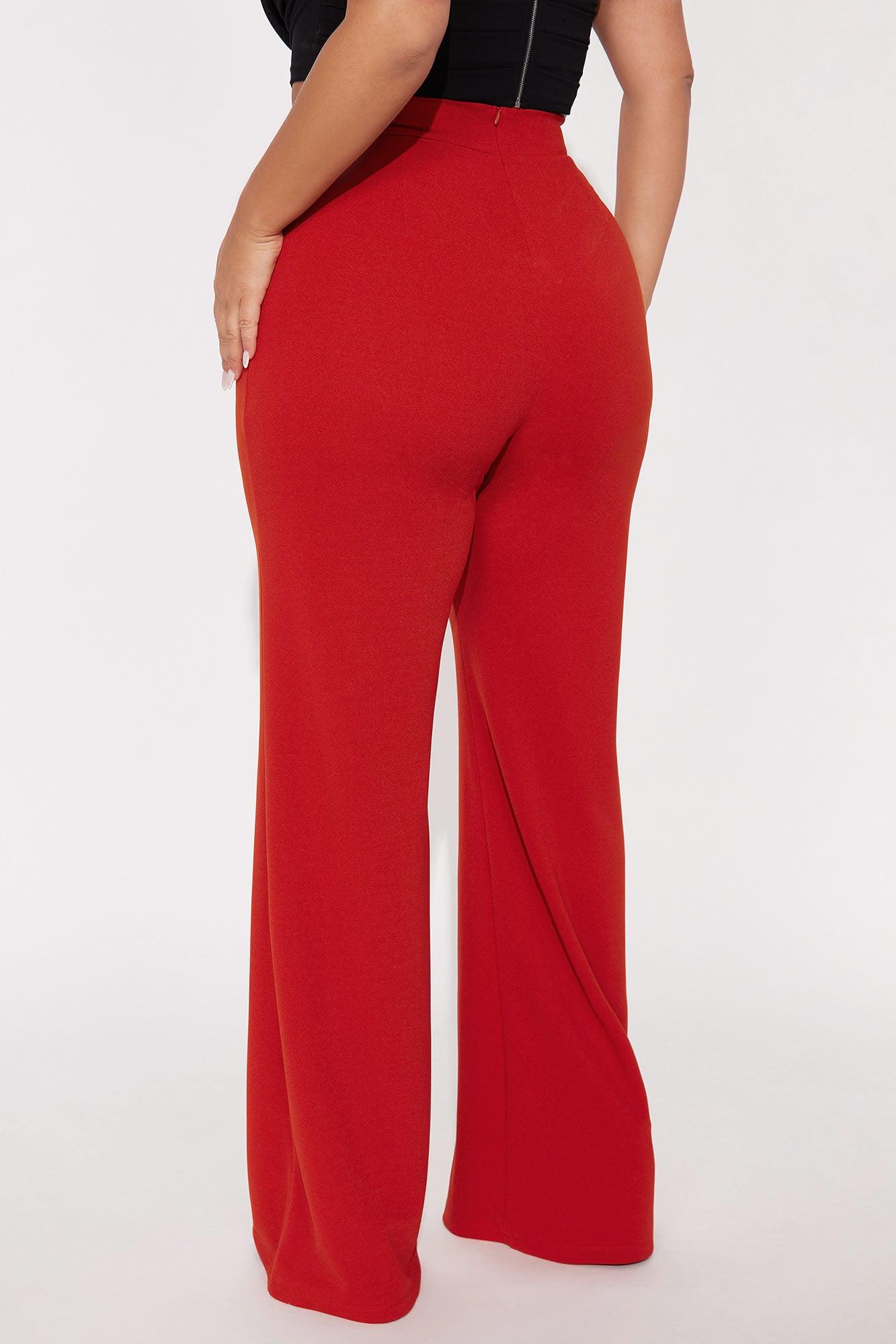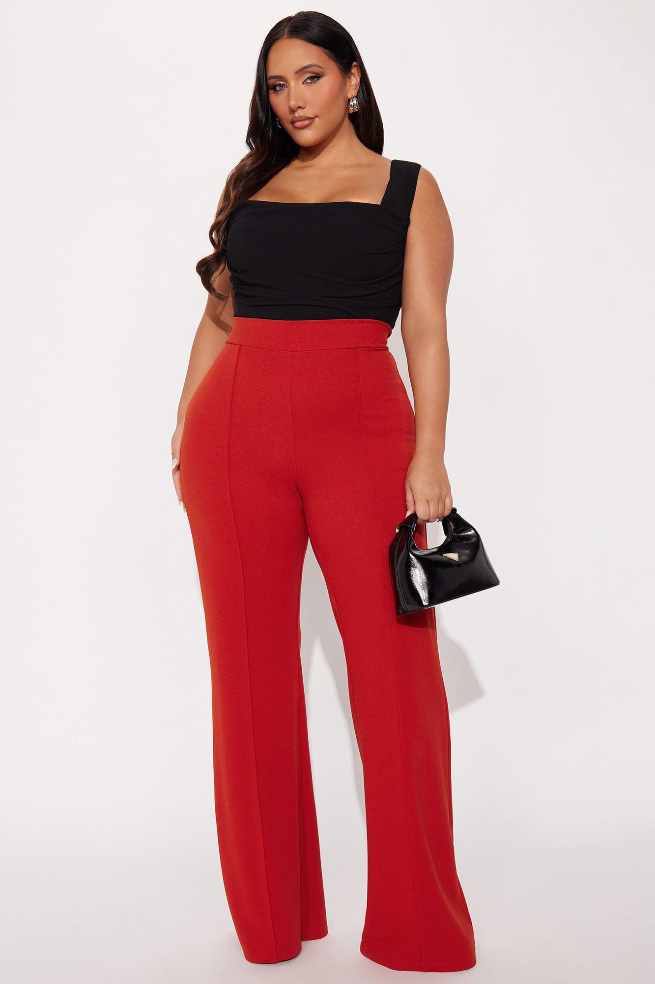 Available In Black, Burgundy, Charcoal, Chocolate, Hunter Green, Ivory, Mauve, Navy, Oatmeal, Olive 1, Plum, Red, Royal, Rust, Sage, Taupe And White. Wide Leg Flare Pant Back Zipper High Waist Tall 36" Inseam Pleated Stretch Self: 95% Polyester 5% Spandex Imported