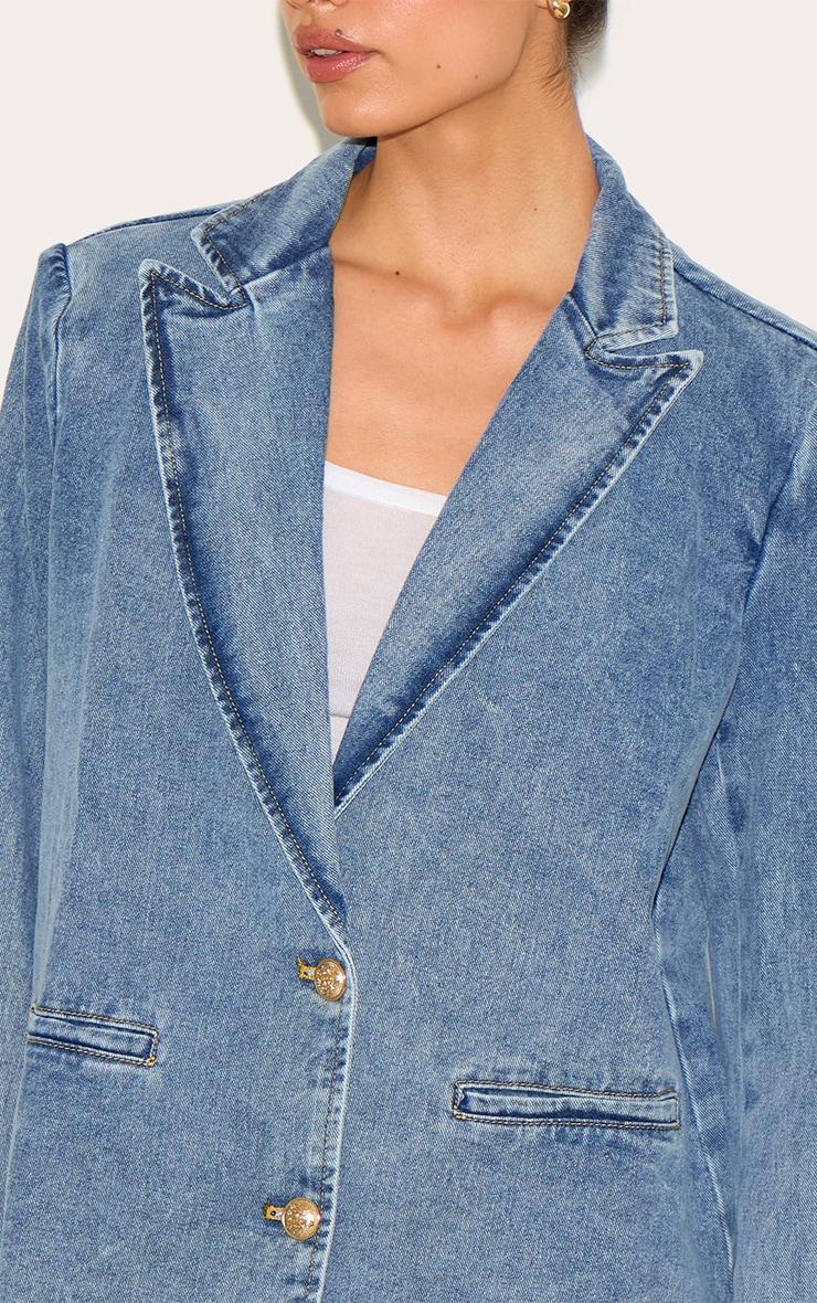 This tall vintage mid wash oversized button denim blazer is a versatile addition to your wardrobe, featuring a structural collar, button fastenings and faux pockets. For an elevated finish that takes your look from day to night, style this blazer with a scoop neck cami, tailored pants, a slouchy tote and your go-to pointed toe court heels.Length approx 71cm/28inch (Based on sample size US 4)Model wears size UK 8/ EU 36/ AUS 8/ US 4Model Height - 5ft 11inchp]:!mb-4inch>Brand: PrettyLittleThingCategory: DenimProduct type: JacketColor: Vintage Mid WashMaterial: Rigid DenimDesign: PlainNeckline: V NeckSleeves: LongOccasion: Evening