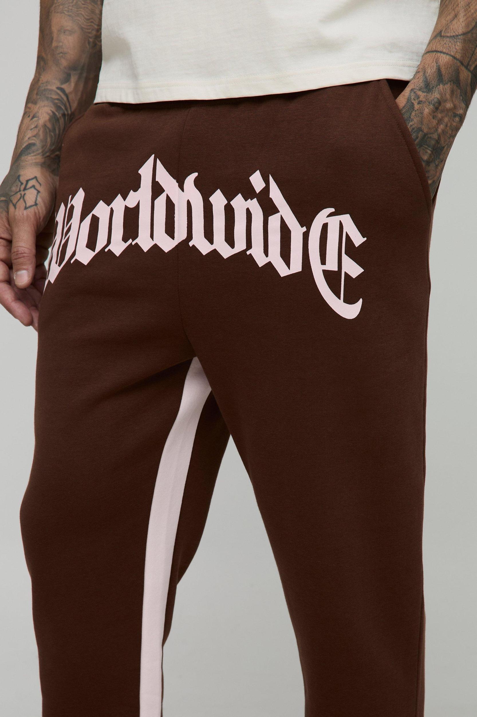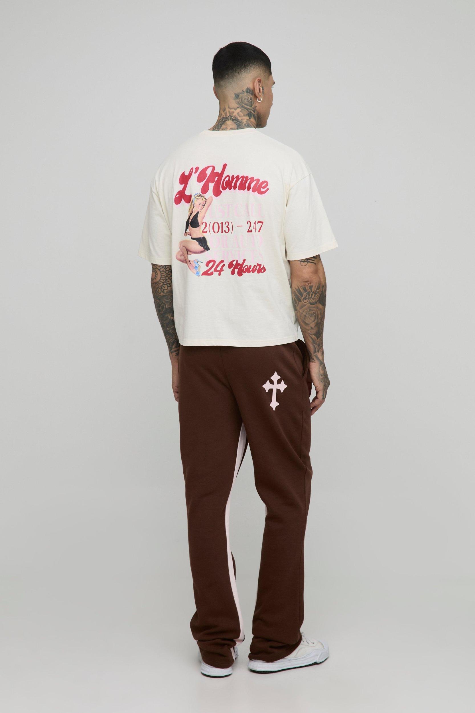Tall Worldwide Cross Print Flare Gusset Jogger | boohooMAN USA Product Image