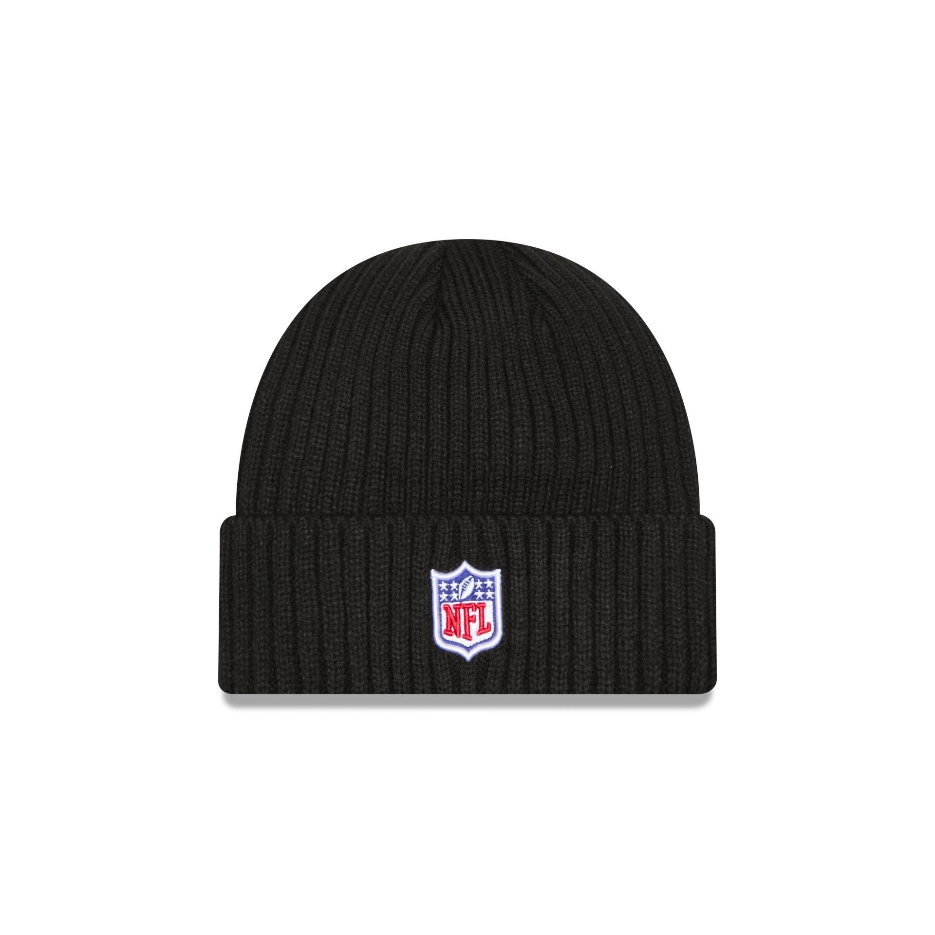 The Tampa Bay Buccaneers 2024 Crucial Catch Tech Knit Hat features an embroidered Buccaneers logo at the front cuff with an NFL Shield at the rear.