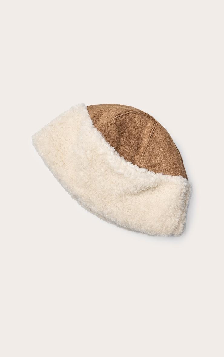 Finish your look with an understated yet impactful accessory. The tan extended borg trim bucket hat offers a contemporary silhouette, its classic rounded crown framed by a substantial borg trim in a complementary lighter tone. This versatile piece effortlessly completes any day ensemble, from a crisp shirt and tailored pants to a chunky knit and wide-leg jeans. Pair it with comfortable ballet flats and a stack of delicate gold rings for a discerning aesthetic that speaks volumes about your confident approach to style.p]:!mb-4inch>Category: AccessoriesProduct type: Bucket HatColor: TanMaterial: BorgOccasion: Day