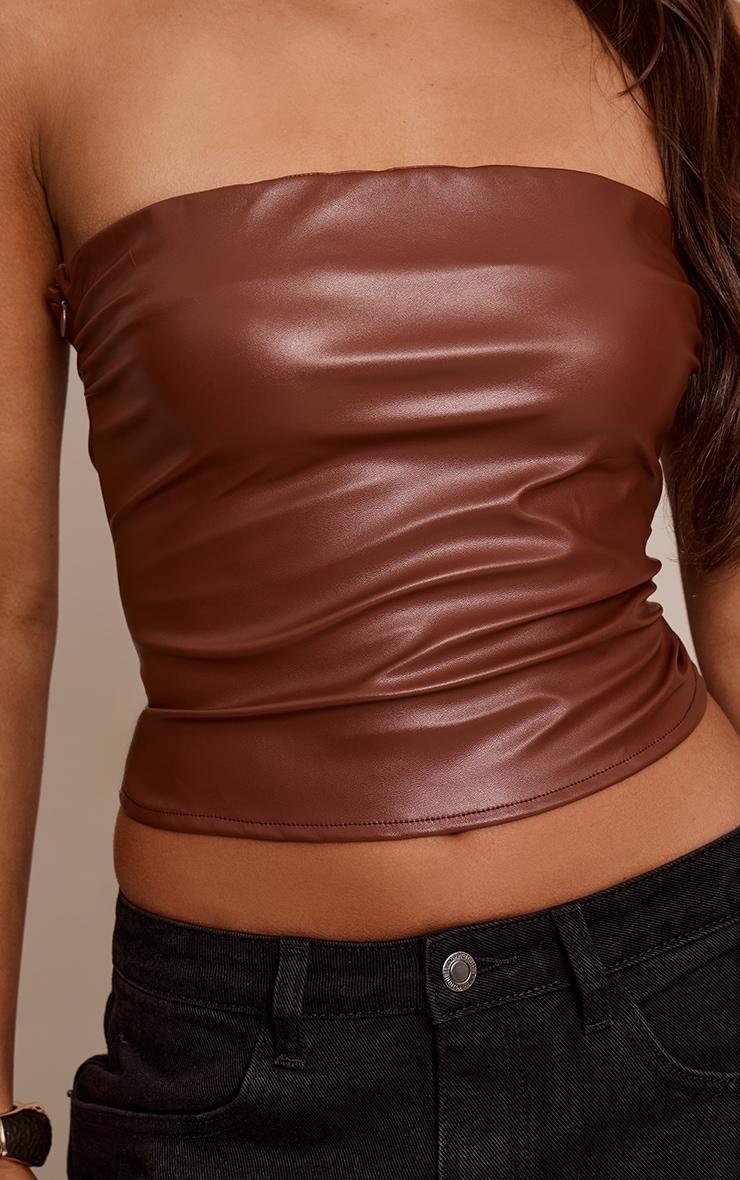 Curate an unforgettable evening edit with a piece designed for modern impact. The tan faux leather fitted bandeau top offers a sharp, strapless neckline that frames the décolletage, while its tailored construction ensures a flattering, sculpted silhouette, complete with a discreet side zip closure. Pair this versatile tan hue with dark tailored wide-leg pants for a cohesive, powerful statement, or a sleek midi skirt for an elevated feel. Ground the look with sophisticated white kitten heels and complement the minimal neckline with bold statement earrings, perfecting a knowing, artful approach to night-out styling.Length approx 34.5cm/13.5inch (Based on sample size US 4)Model wears size UK 8/ EU 36/ AUS 8/ US 4Model Height - 5ft 9inchp]:!mb-4inch>Brand: PrettyLittleThingCategory: TopsProduct type: Bandeau TopColor: TanMaterial: Faux LeatherSleeves: BandeauOccasion: Evening