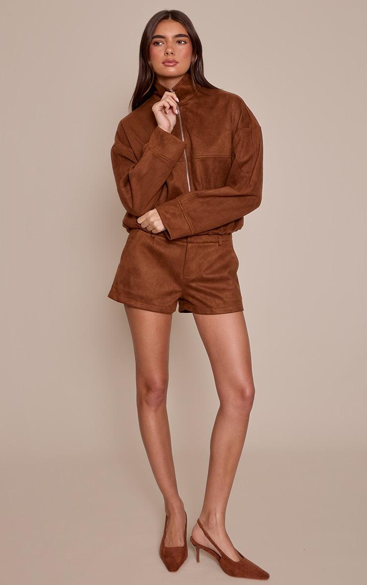 Embrace elevated daywear with the tan faux suede tailored shorts. Crafted from a tan faux suede, they boast a confident tailored cut. Perfect for sophisticated daytime events, from brunch to city styling. Finish your two piece set with the matching jacket, pointed heels, and subtle gold earrings.Length approx 33cm/13inch (Based on sample size US 4)Model wears size UK 8/ EU 36/ AUS 8/ US 4Model Height - 5ft 7inchp]:!mb-4inch>Brand: PrettyLittleThingCategory: Co-ordsProduct type: Tailored ShortsColor: TanMaterial: Faux SuedeOccasion: Day