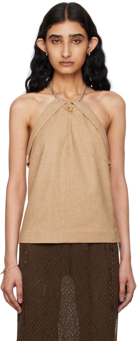 Tan Halter Neck Tank Top