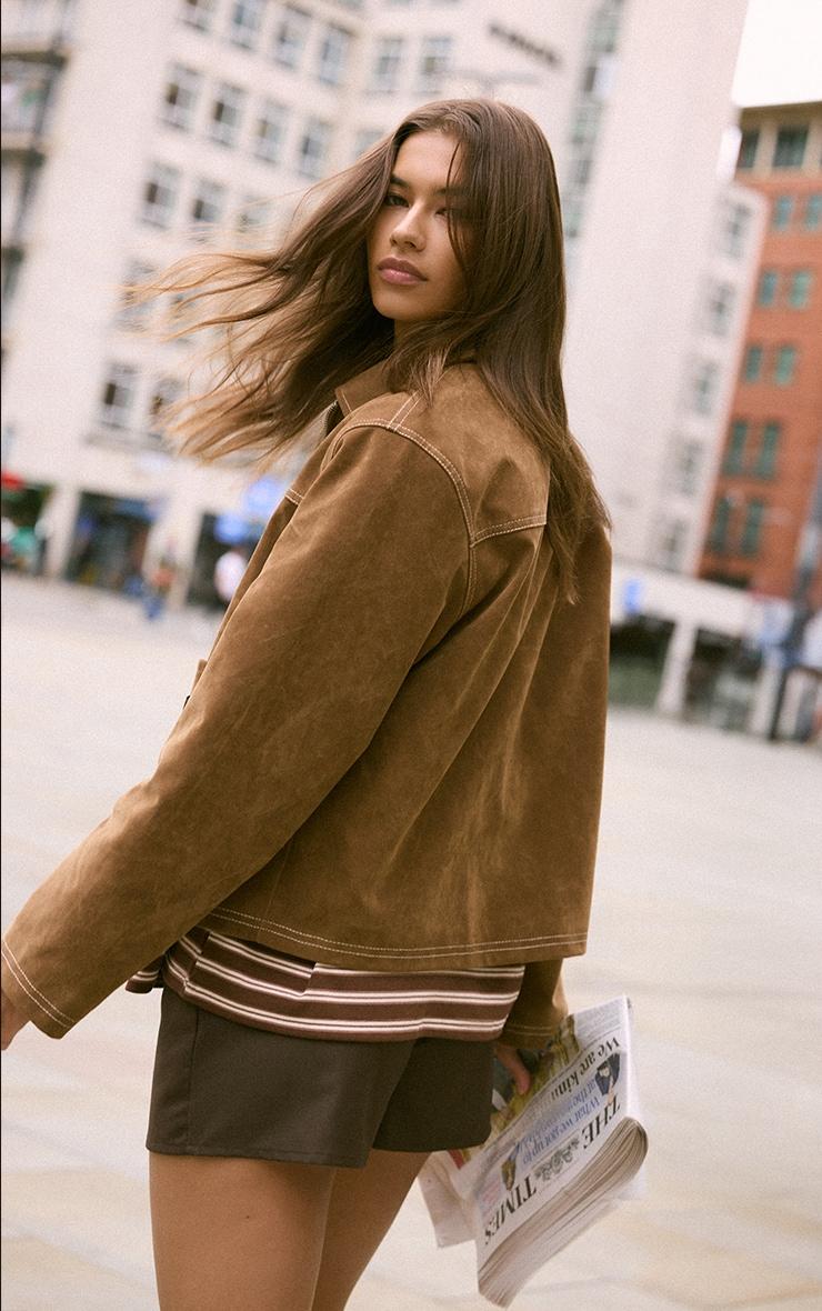 Update your outerwear with the tan pocket detail faux suede jacket. Made from a tan faux suede material, this jacket features structured tailoring and pocket accents for a utility-inspired edge. Style with tailored pants or a mini skirt and some comfy sneakers for a polished look.Length approx 48.5cm/19inch (Based on sample size S)Model wears size SModel Height - 5ft 8inchp]:!mb-4inch>Brand: PrettyLittleThingCategory: OuterwearProduct type: JacketColor: TanMaterial: Faux SuedeOccasion: Day