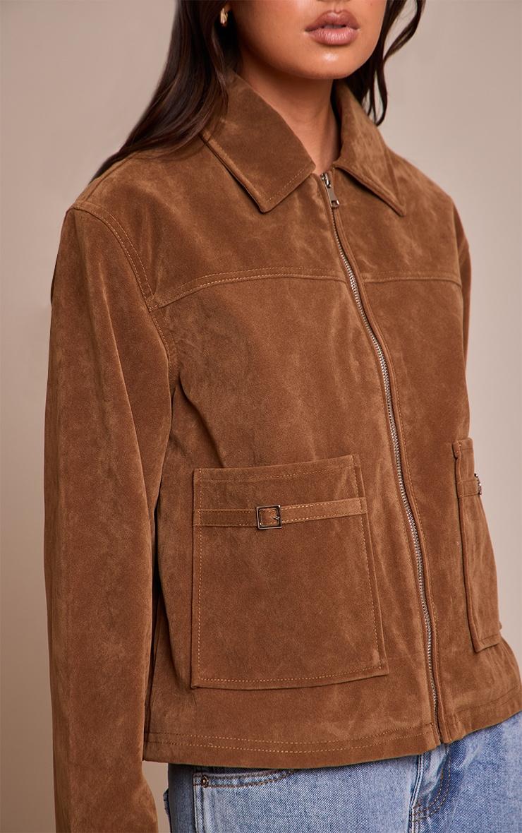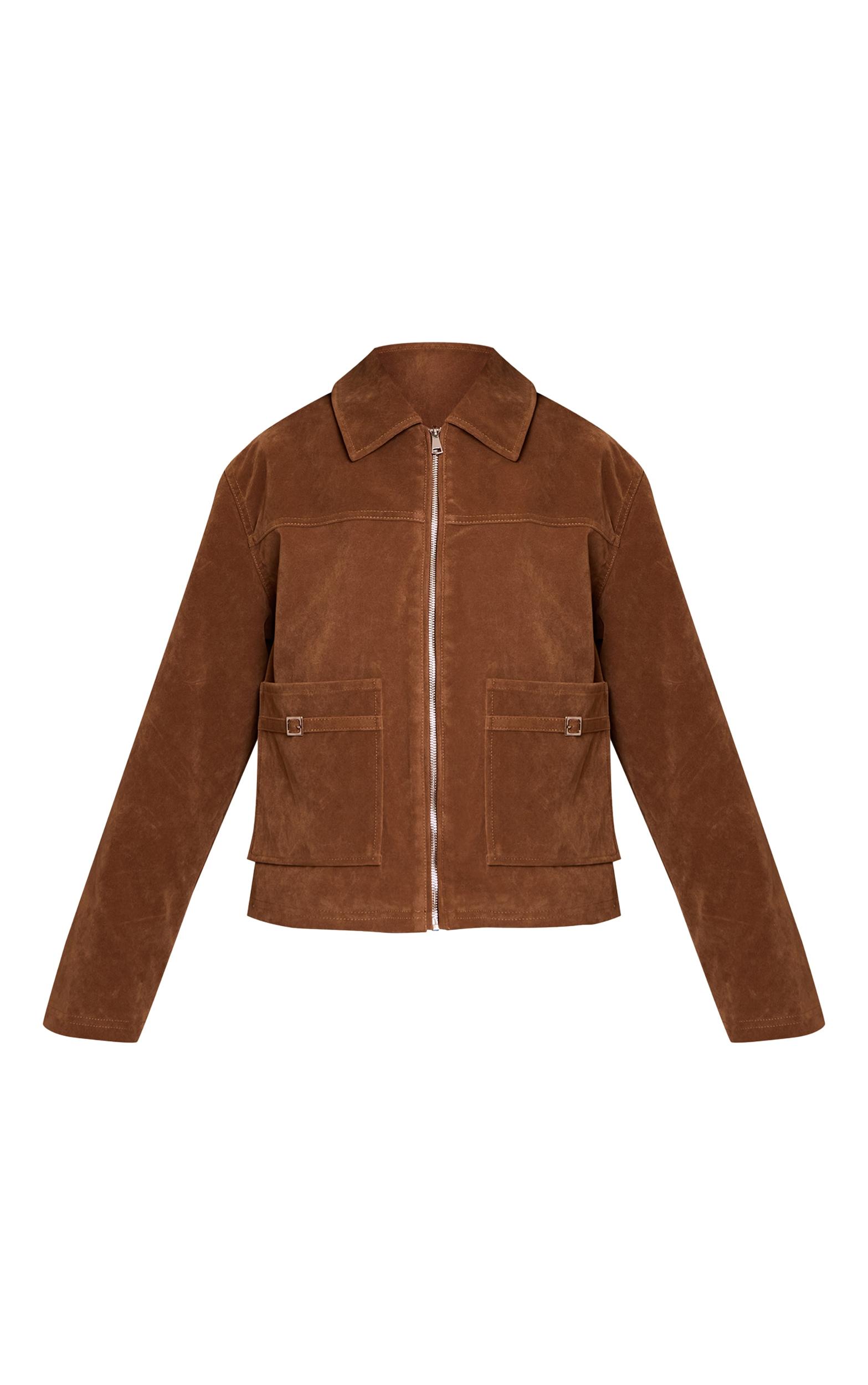 Own your street style with this essential outerwear piece. The tan pocket trim faux suede jacket boasts a confident, relaxed fit with a classic collar, full zip fastening, and standout flap pockets complete with modern buckle details. Perfect for day plans, style yours with high-waisted denim, classic boots, subtle gold stud earrings, and a sleek black bag for an effortlessly put-together ensemble that speaks volumes without saying a word.Length approx 48.5cm/19inch (Based on sample size S)Model wears size SModel Height - 5ft 7inchp]:!mb-4inch>Brand: PrettyLittleThingCategory: OuterwearProduct type: JacketColor: TanMaterial: Faux SuedeOccasion: Day