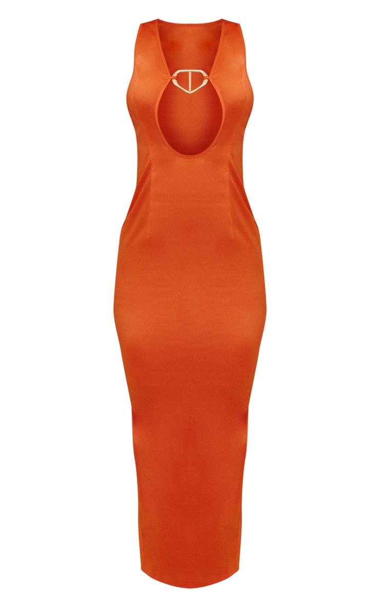 Take on your weekend the right way with this statement tangerine satin plunge trim detail strappy midaxi dress. Made from a tangerine satin material with a plunge neckline, trim detailing and a midaxi length, this is everything we re loving and more. With it s figure-hugging fit this women's midaxi dress is sure to hug you in all the right places. To complete the look style this seamlessly with clear high heels and statement gold accessories for a look that will secure you all the likes Length approx 132cm/52 (Based on a sample size UK 8) Model wears size UK 8/ EU 36/ AUS 8/ US 4 Model Height - 5ft 5 .