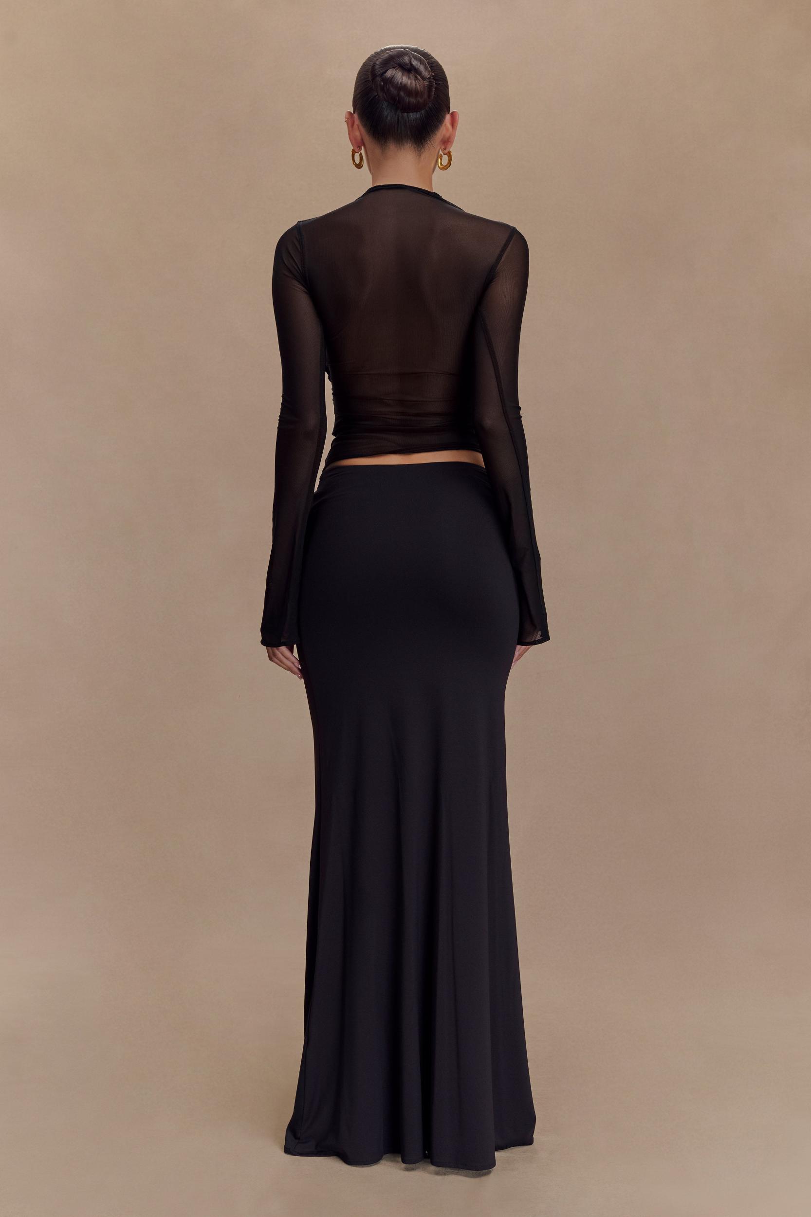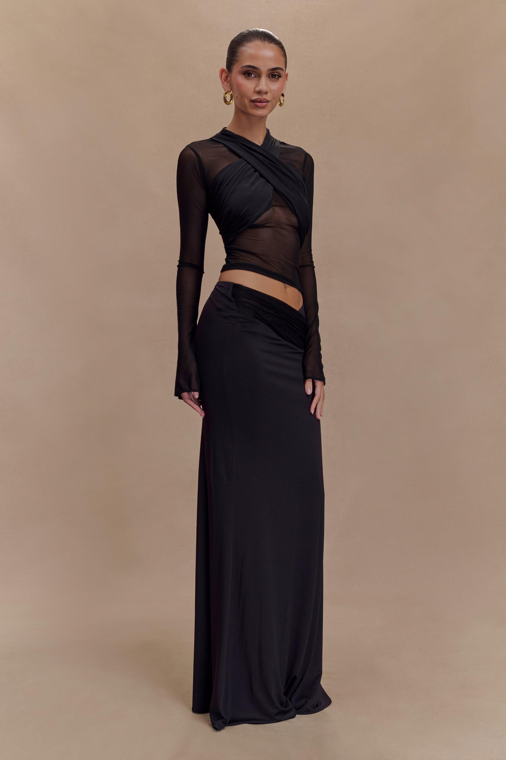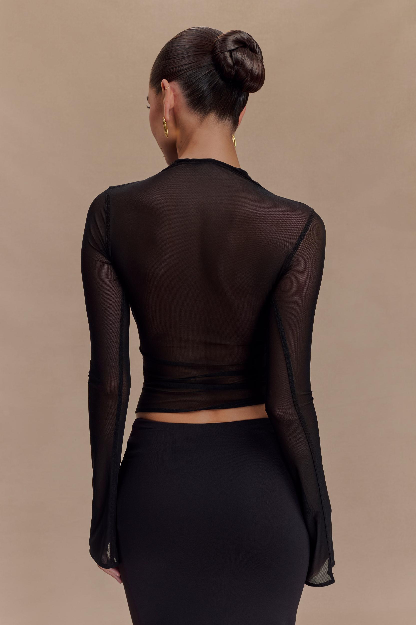 The perfect balance of mesh, stretch, and sophistication. The TANIA Slinky and Mesh Long Sleeve Top effortlessly combines elegance with a modern edge. Featuring a high neckline and a mesh bodice, this top adds an alluring touch of sophistication. The jersey halter overlay contrasts beautifully with the sheer mesh, creating a flattering and stylish fit. Long sleeves balance the look with a sleek and refined finish, making it perfect for layering or wearing on its own. Whether paired with skirts or trousers, this versatile top is ideal for a chic, fashion-forward look. Designed with a contemporary silhouette, this top is a wardrobe essential for those who love to make a statement with their style.