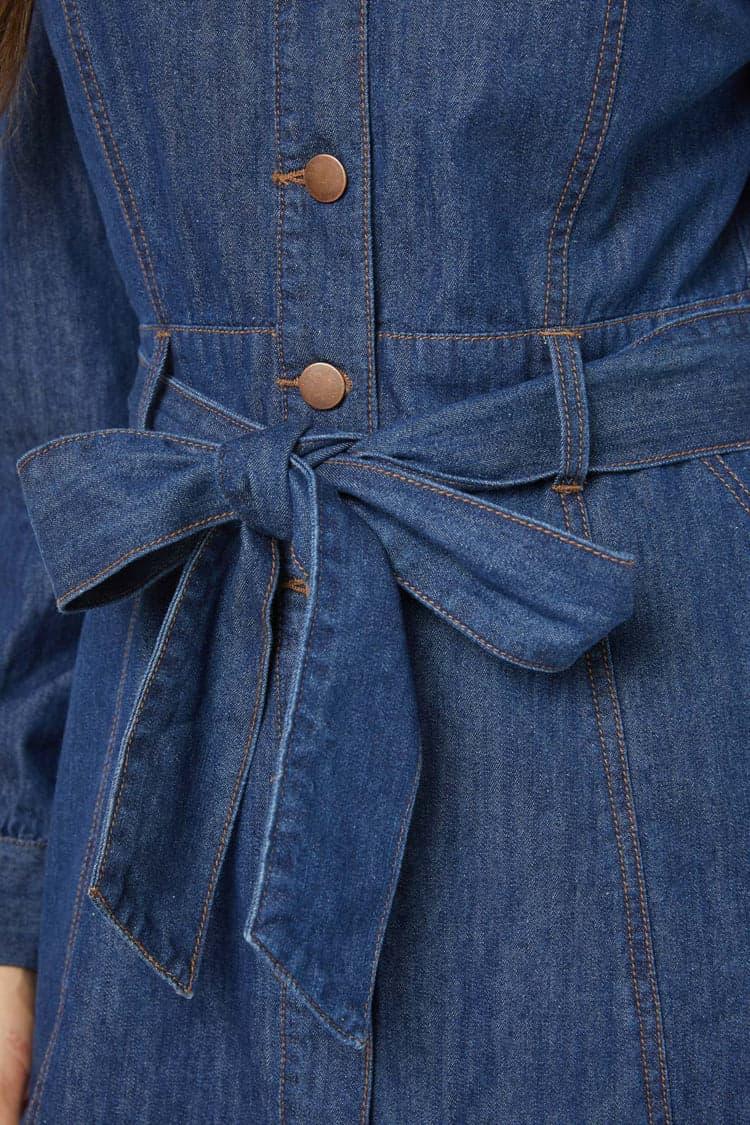 Tansy LS Mini Dress by Princess HighwayMeet your new denim darling—the Tansy LS Mini Dress! This beloved classic gets a chic makeover, transforming into a playful mini dress that's perfect for every spirited wardrobe. Featuring a timeless collar and shank-style button front, this dress exudes effortless style with a hint of vintage charm. The detachable waist tie lets you customize your silhouette, whether you’re aiming for a cinched waist or a relaxed fit.Finished above the knee, the panelled skirt adds a flirty flair, while handy side pockets keep your essentials close and your hands free for spontaneous adventures. Crafted from lightweight cotton denim, the Tansy LS Mini Dress offers all-day comfort without sacrificing style. Available in rich dark denim, it’s the versatile piece you’ll reach for time and time again.Fabric & Care:100% Cotton DenimCold machine washWash garment inside out and separatelyColor will fade beautifully over timeDo not wring on spinDo not bleach or soakAvoid tumble drying; line dry in shadeWarm iron on reverse if requiredDo not dry clean