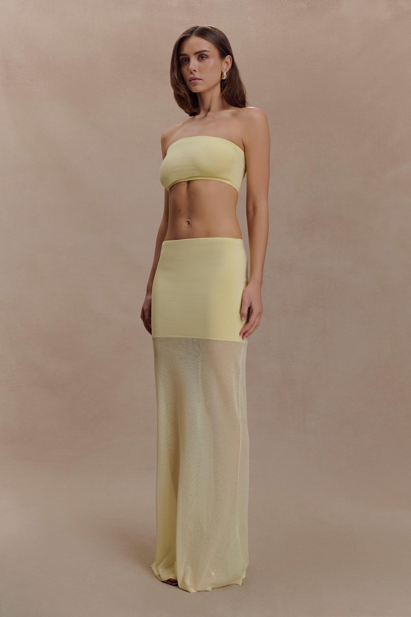 Clean lines, effortless versatility. The TANYEL Knit Bandeau Top offers a sleek, minimal silhouette crafted from a thick knit fabrication that hugs the body with soft structure. Designed strapless with an elasticated top edge, it stays comfortably in place while delivering a smooth, streamlined finish. Simple yet elevated, this top is a foundation piece for modern dressing — perfect for pairing with tailored separates, denim, or matching knitwear.
