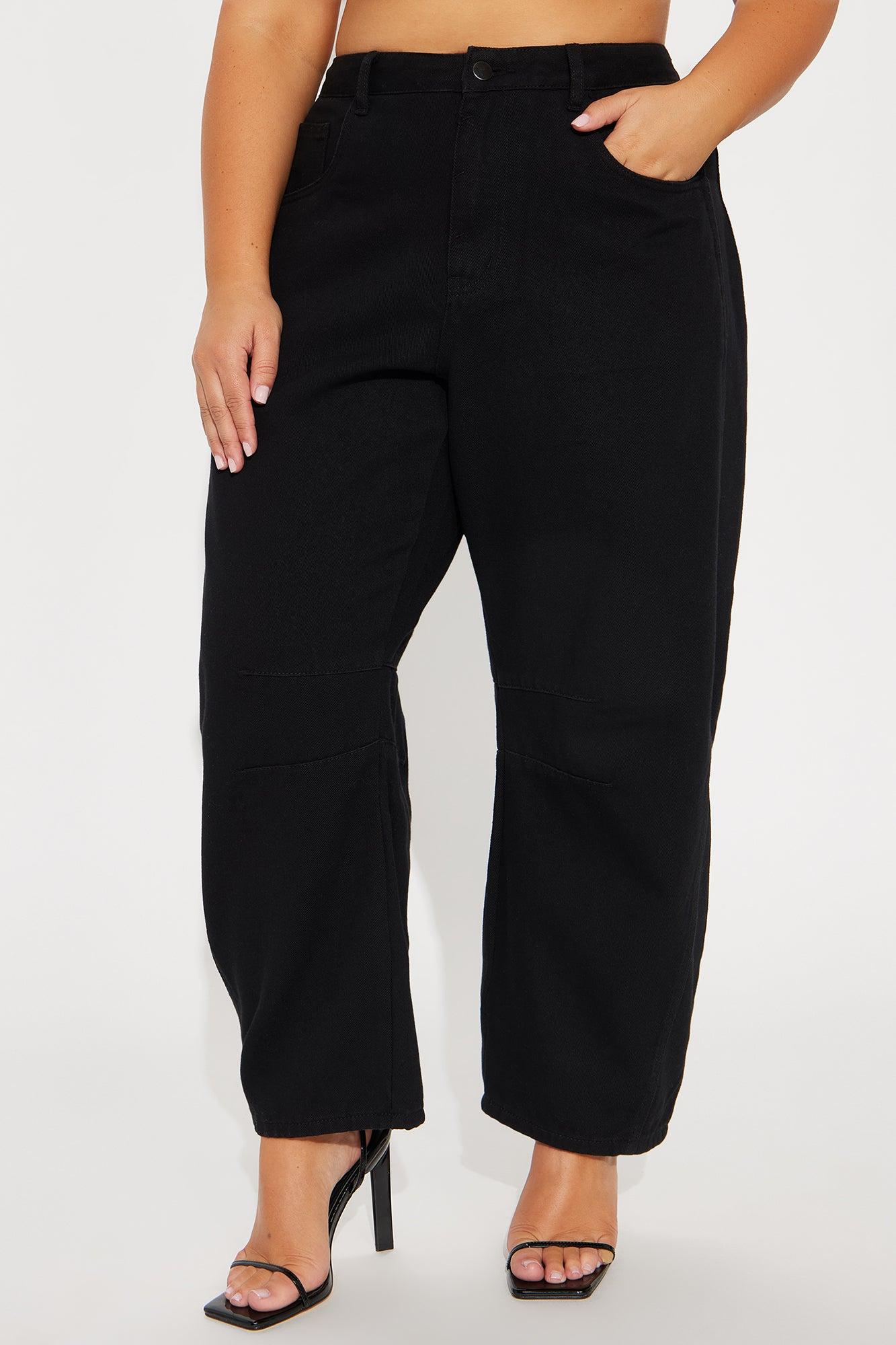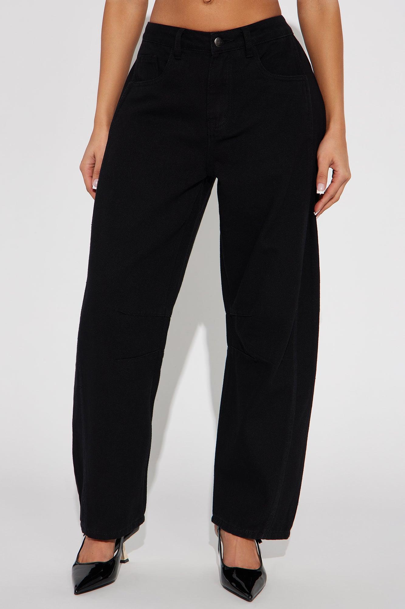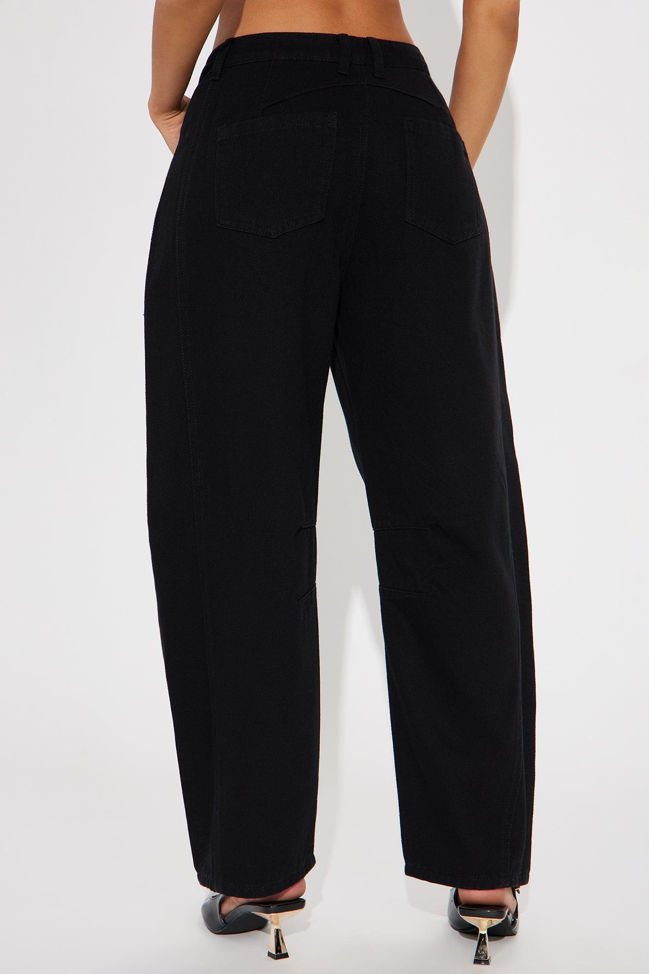 WOMEN'S BARREL LEG PANTS (BLACK) - BLACK / 29/30