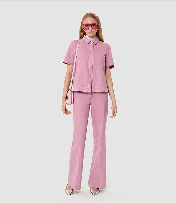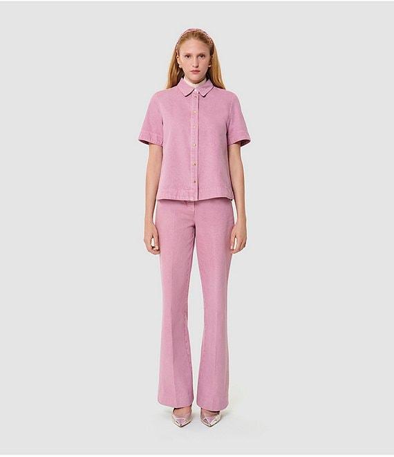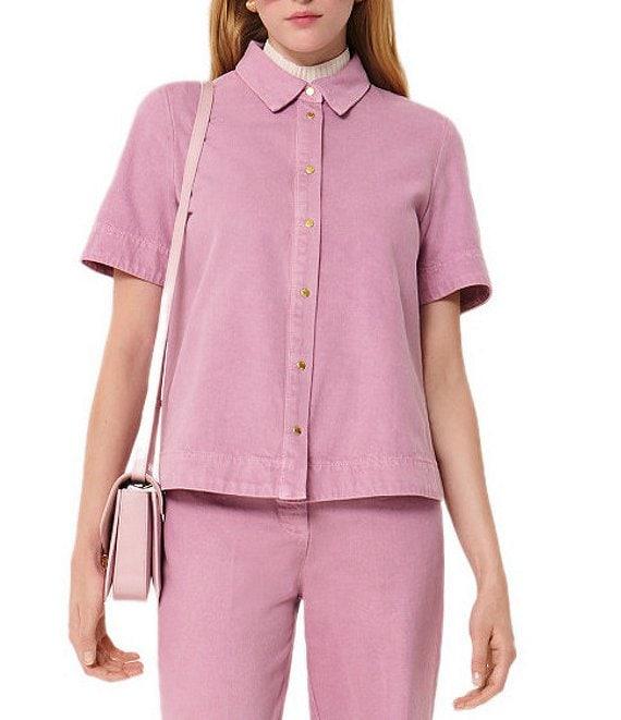 Tara Jarmon Camilia Denim Point Collar Short Sleeve Button Front Top