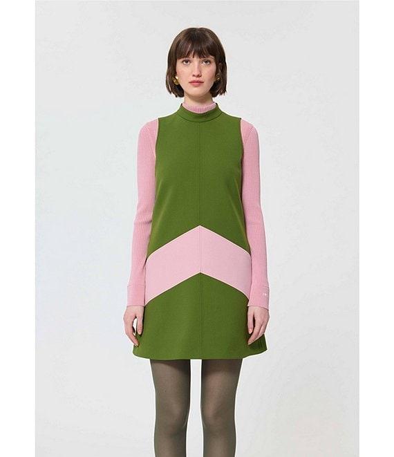 From Tara Jarmon, this dress features: Woven fabrication A-line silhouette Chevron print Mock neckline Sleeveless Front seam detail Straight hem Back zip closure Approx. 35.04" length Polyester/viscose/cotton/elastane Dry clean Imported.