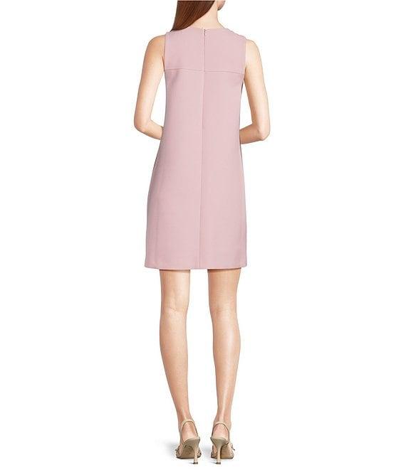 From Tara Jarmon, this dress features: Woven fabrication A-line silhouette Round neckline Sleeveless Fabric covered button detail on shoulders Bow detail Straight hem Back zip closure Approx. 30.63" length Polyester/viscose/cotton/elastane; lining: polyester/viscose Dry clean Imported.