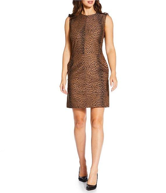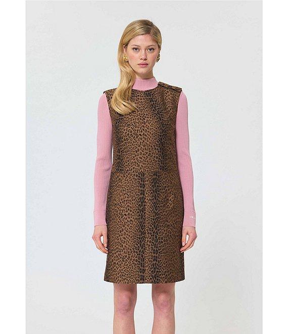 Tara Jarmon Rohane Leopard Print Round Neck Sleeveless Shift Dress