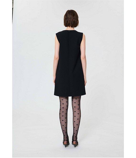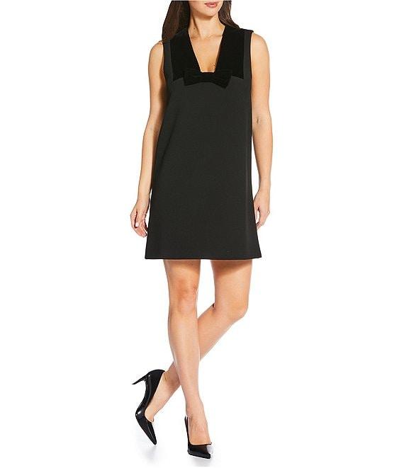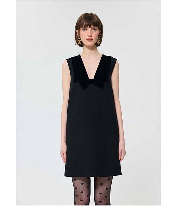 Tara Jarmon Rusane Crepe V-Neck Velour Bow Sleeveless A-Line Mini Dress