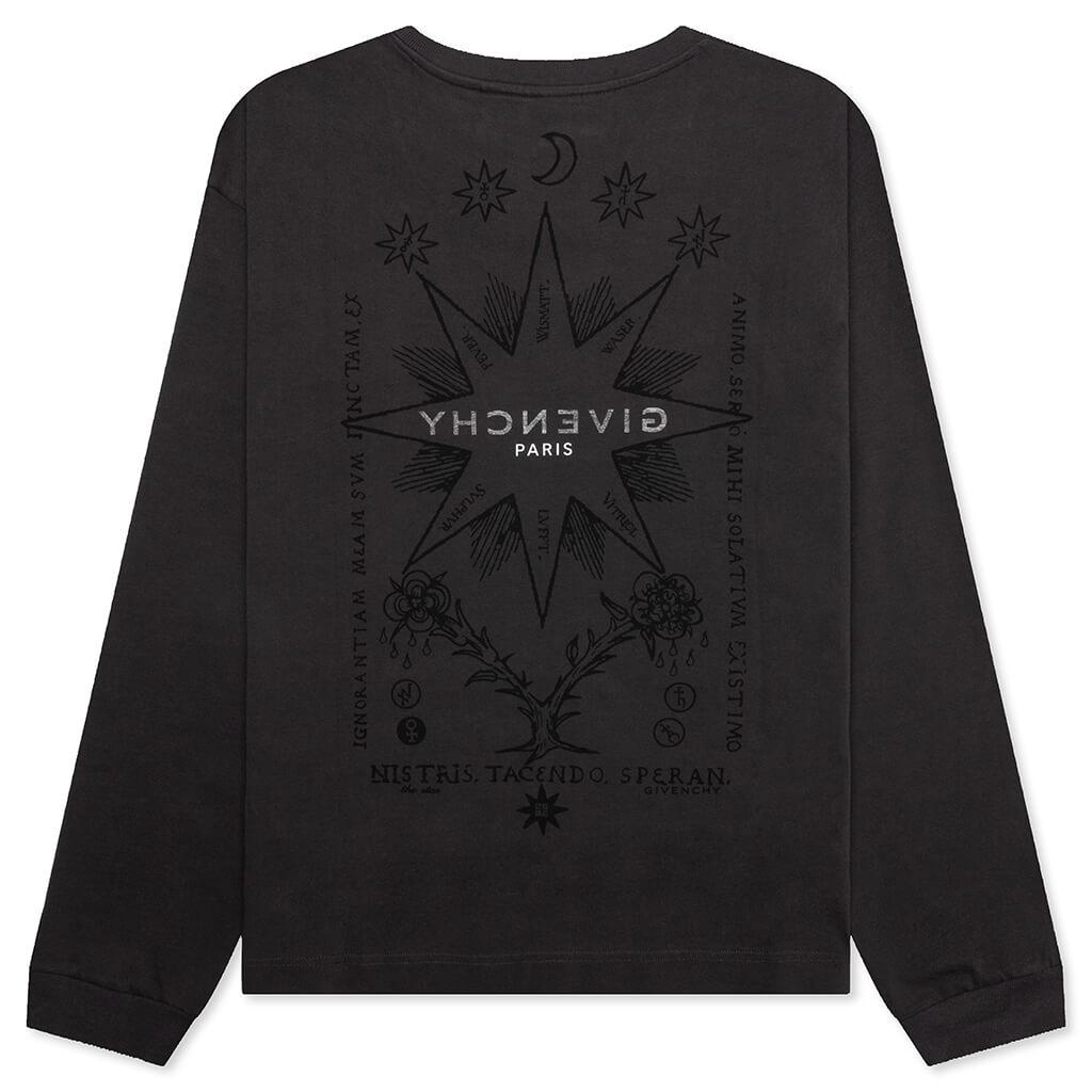 The Boxy Fit L/S T-Shirt in Rosewood offers a relaxed yet stylish look. Crafted from cotton, this long-sleeved t-shirt features a classic crew neck and a small GIVENCHY signature printed on the front. A bold tarot print adorns both the front and back, adding a unique graphic element. The boxy fit enhances its laid-back silhouette. 100% Cotton Crew neck Small GIVENCHY signature printed on the front Tarot print on the front and back Boxy fit Style No: BM71KP3YNY209