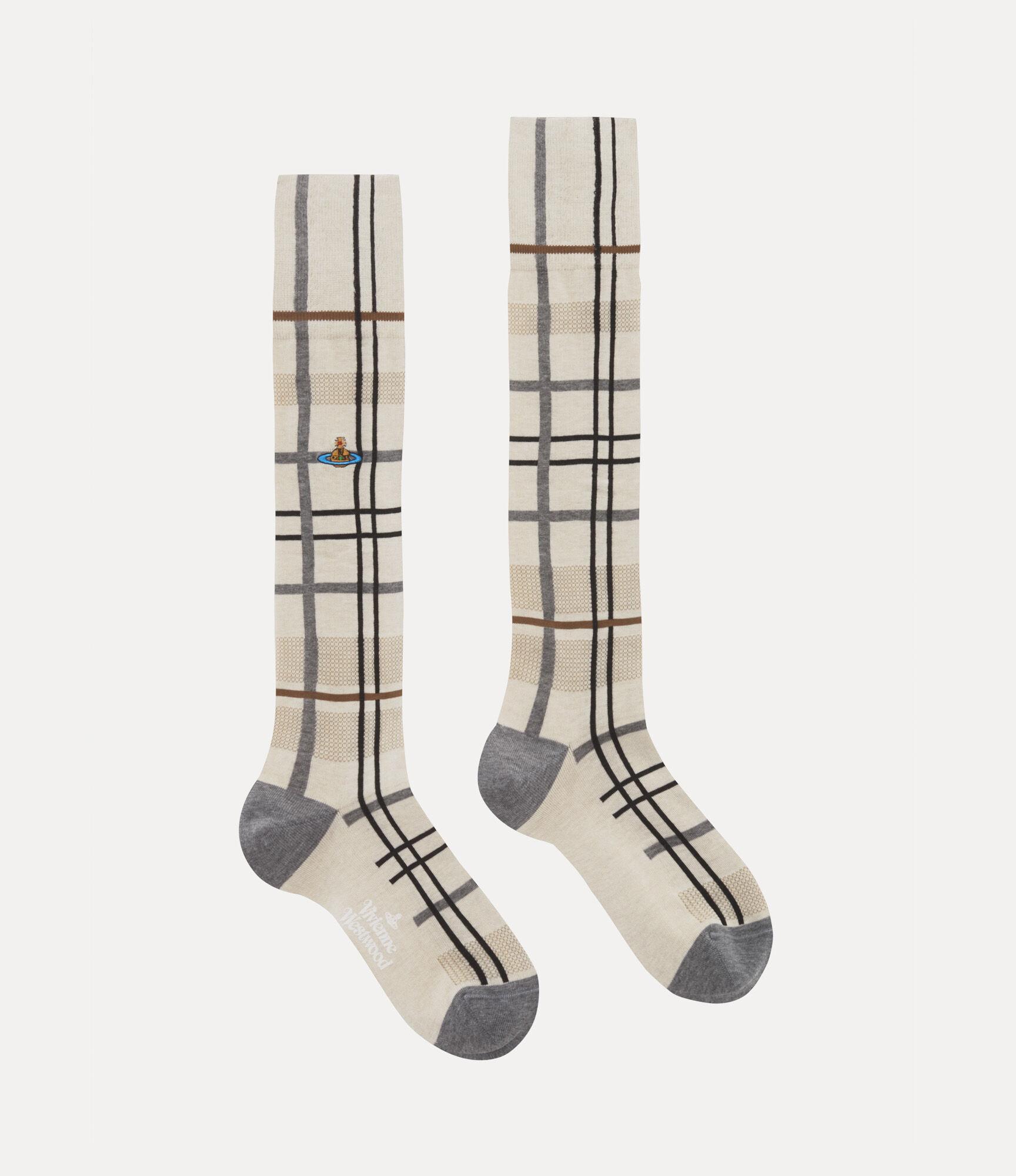 Crafted from a soft cotton blend, our Tartan High socks feature a reinterpreted tartan motif throughout the design, offering a contemporary nod to Scottish heritage. Embroidered with the house’s signature multi-coloured orb emblem, the piece reflects Vivienne’s vision of launching tradition into the future.