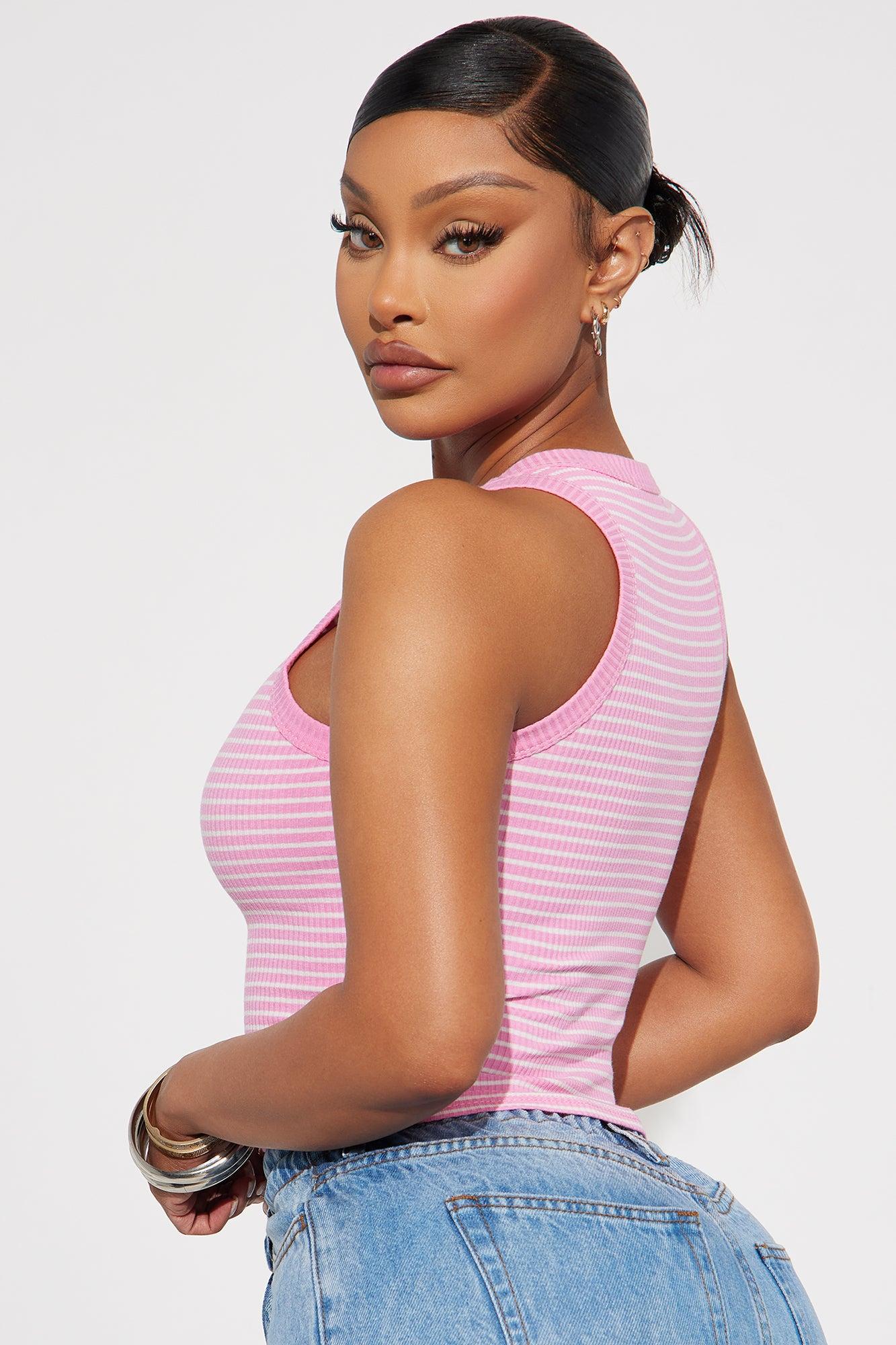 Taryn Striped Rib Tank Top - Pink/combo