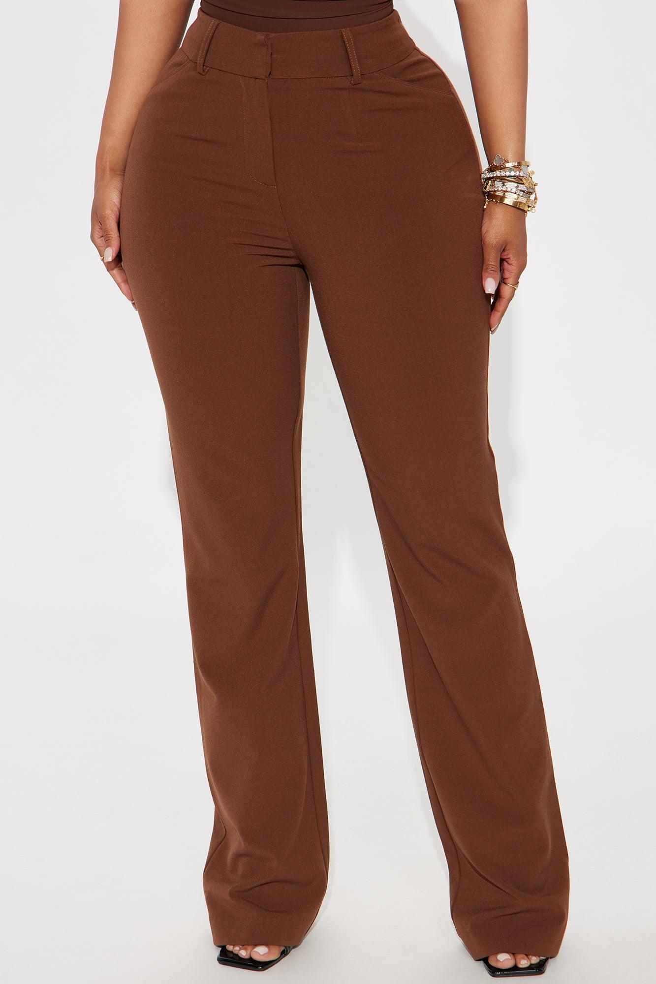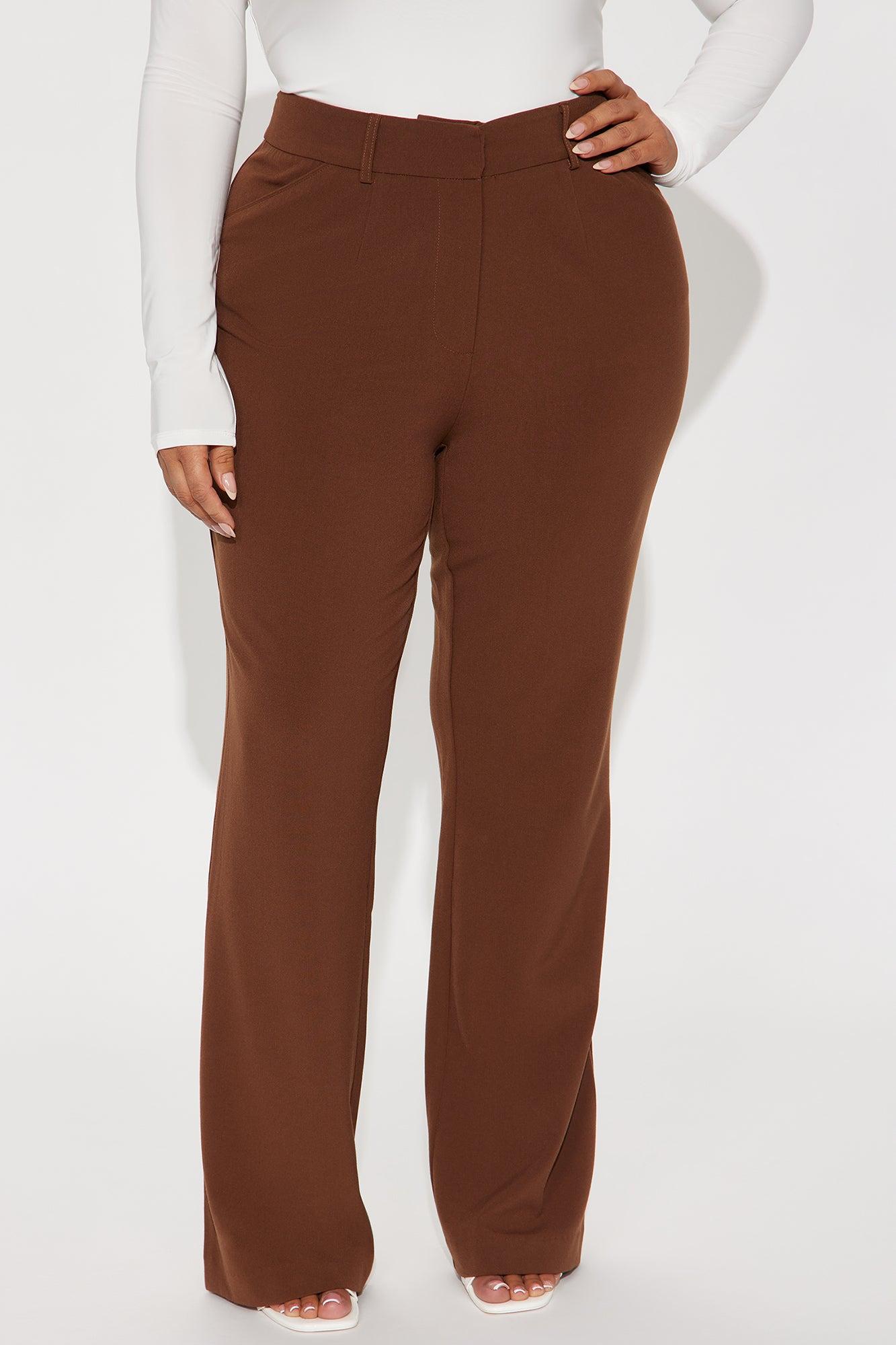 Available In Black, Blush, Brown, Charcoal, Ivory, Kelly Green, Light Blue, Mocha, Navy, Royal And Sage. High Rise Full Stretch Dressy Trouser Pant 2 Front Pockets Wide Leg Belt Loops 33" Inseam Shell: 65% Polyester 30% Rayon 5% Spandex Imported