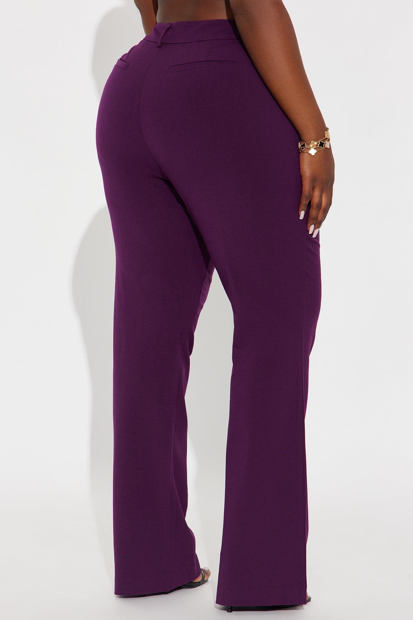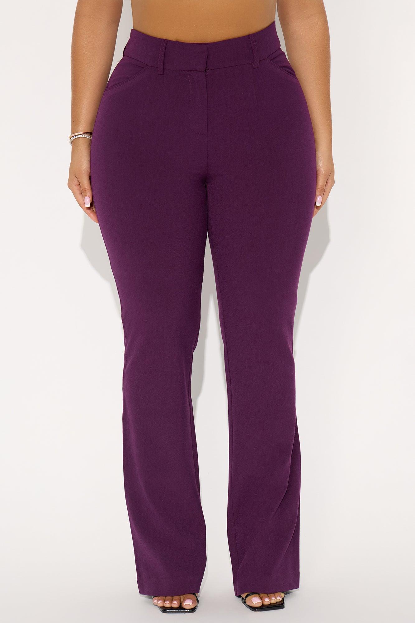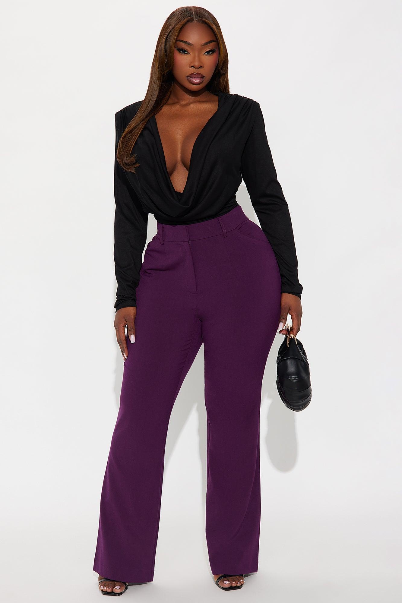 Available In Black, Blush, Brown, Burgundy, Charcoal, Eggplant, Hunter Green, Ivory, Light Blue, Navy, Oatmeal, Royal, Sage And Teal. Dressy Trouser Pant Full Stretch Regular 33" Inseam High Rise 2 Front Pockets Belt Loops Wide Leg Self: 65% Polyester 30% Rayon 5% Spandex Imported
