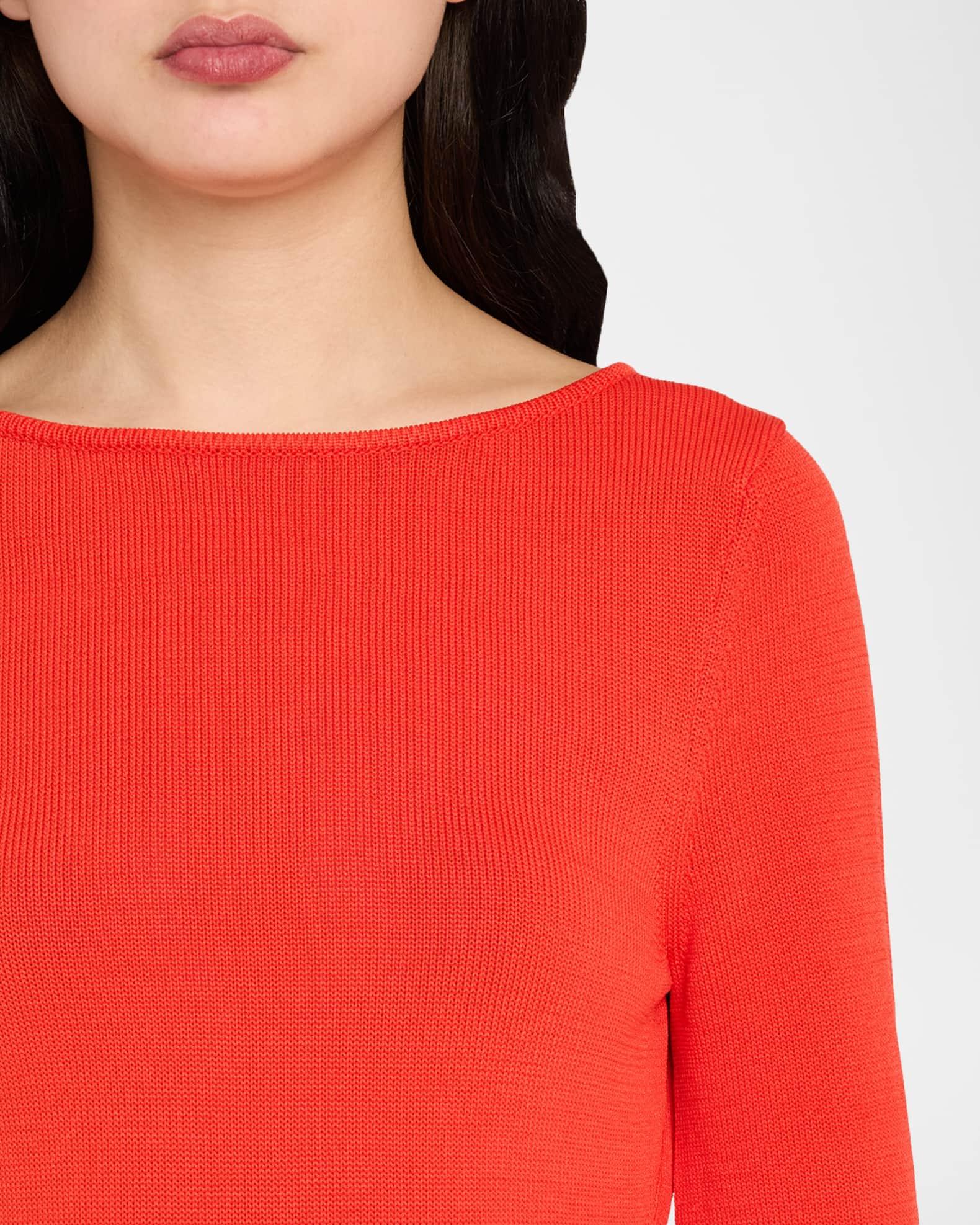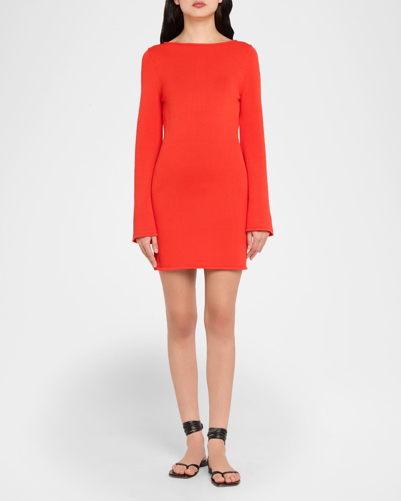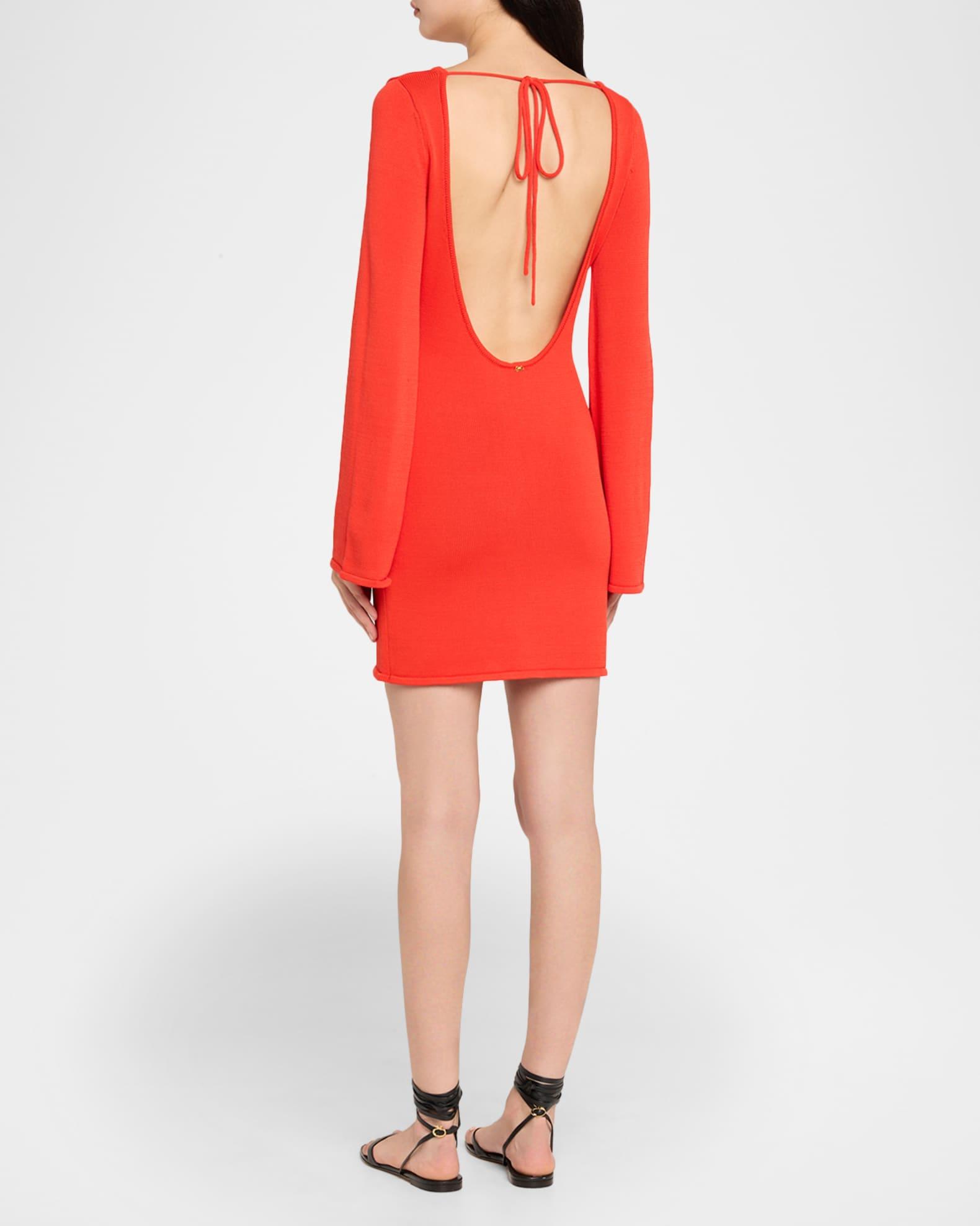 PQ Swim "Tatiana" knit dress finished with rolled trim Boat neckline Long sleeves Low scoop back Hem falls above the knee Shift silhouette Back self-ties Nylon/polyamide/polyester/elastane Made in Colombia