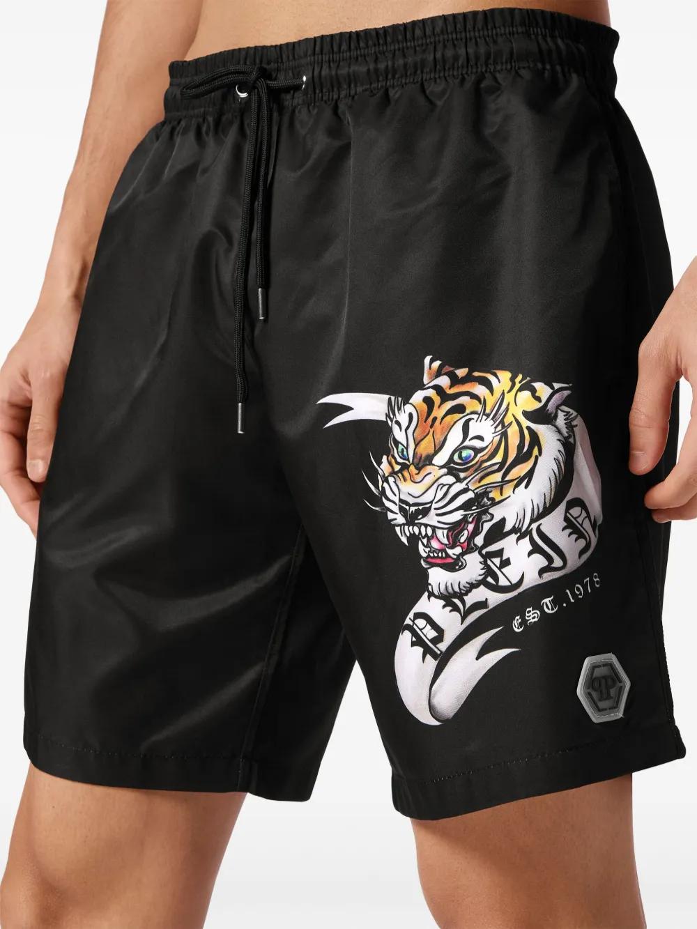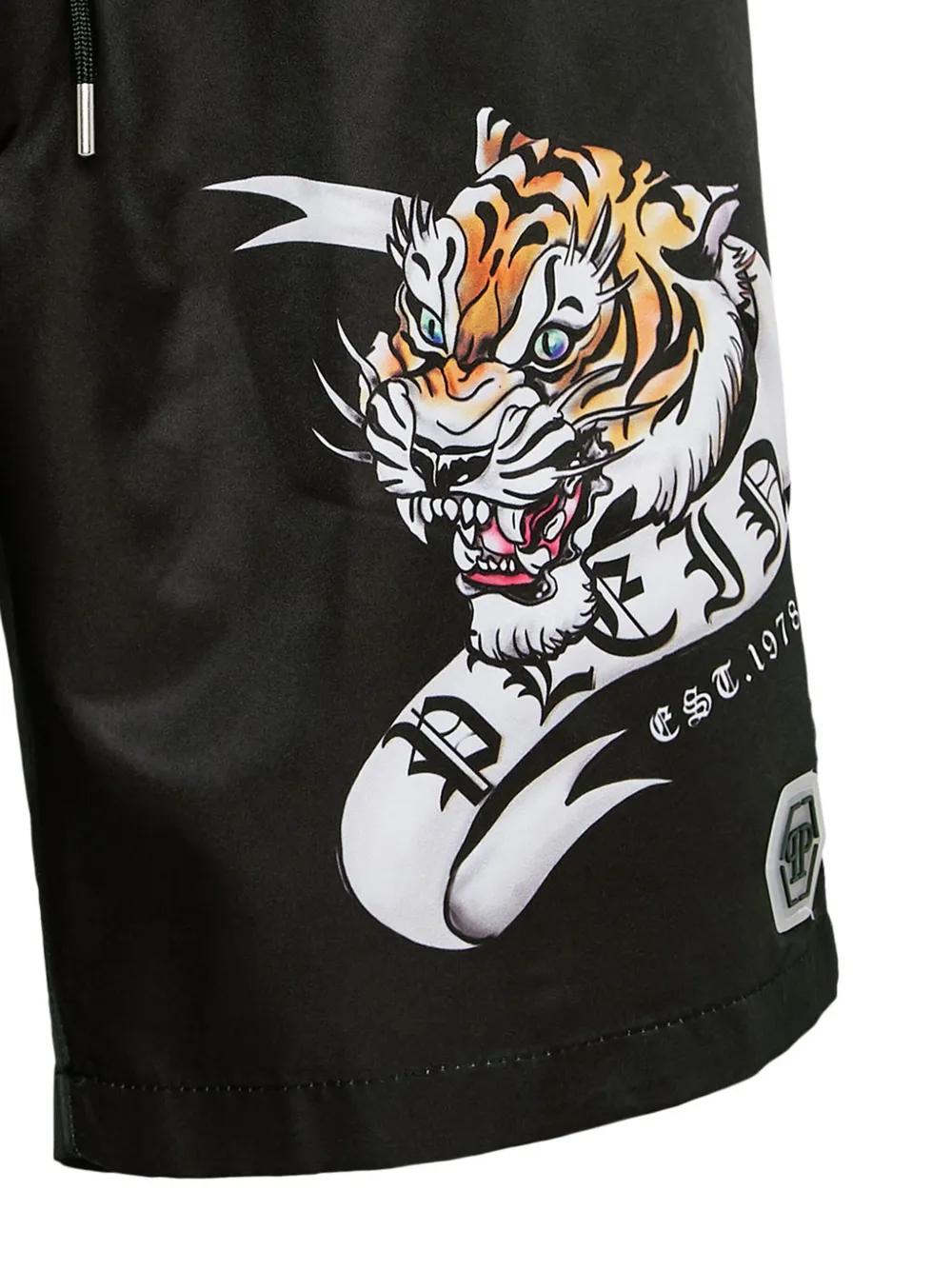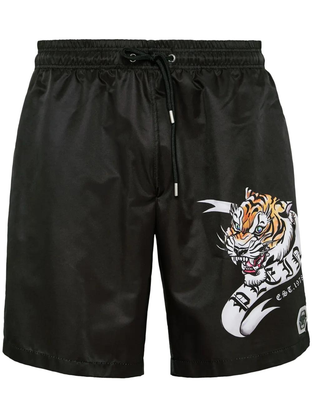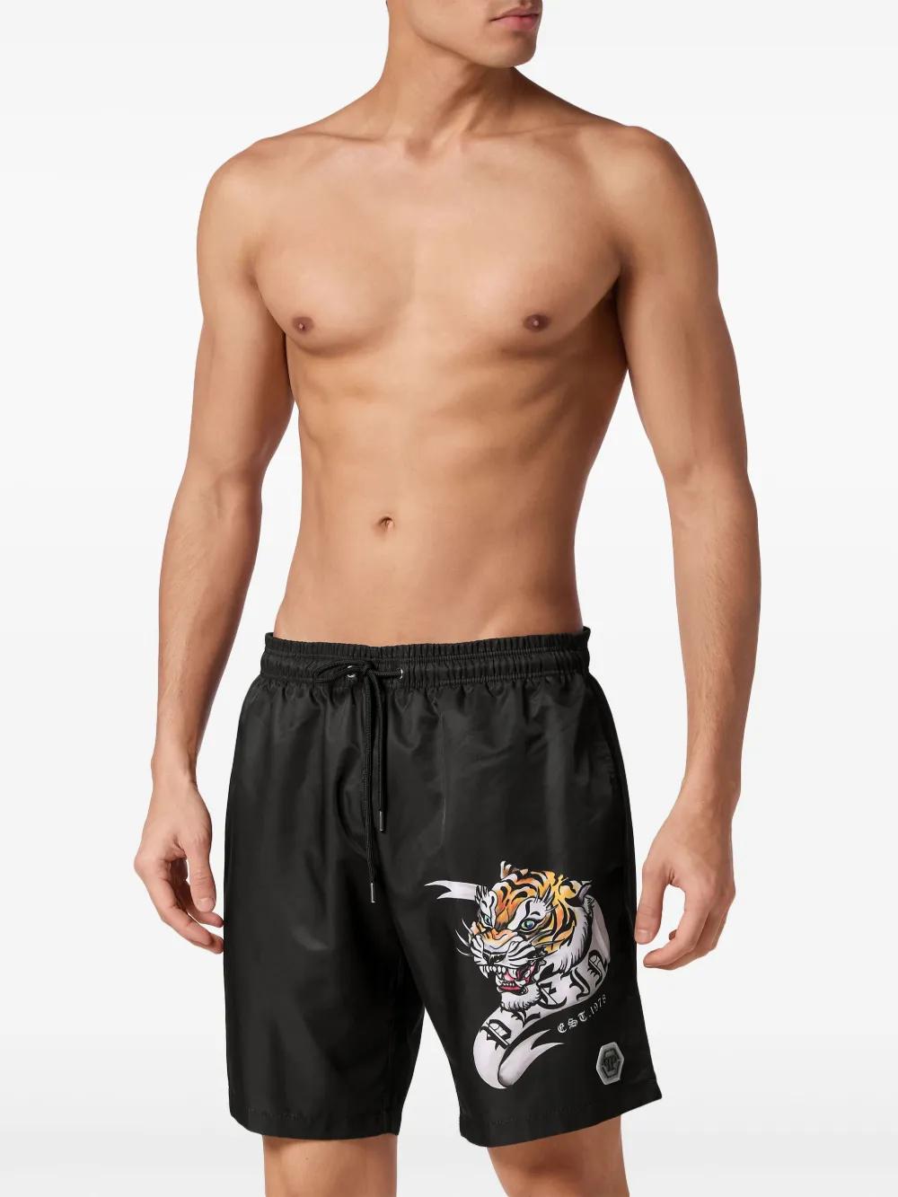 Tattoo-print drawstring swim shorts