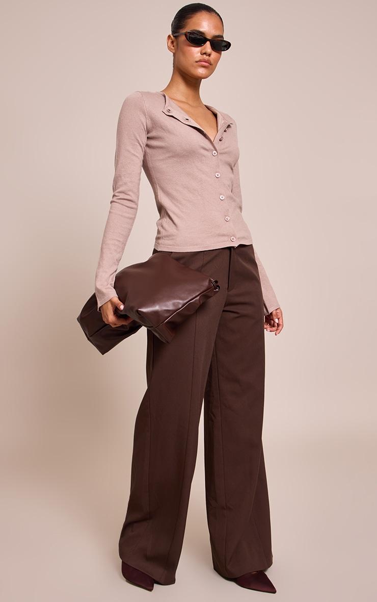 The taupe button through fine knit cardigan brings warmth with understated elegance. Its neutral tone and gently fitted shape make it perfect for seasonal layering, pairing seamlessly with both color and monochrome palettes in a chic, understated manner.Length approx 48.5cm/19inch (Based on sample size S)Model wears size SModel Height - 5ft 7inchp]:!mb-4inch>Brand: PrettyLittleThingCategory: KnitwearProduct type: CardigansColor: TaupeMaterial: KnitOccasion: Day