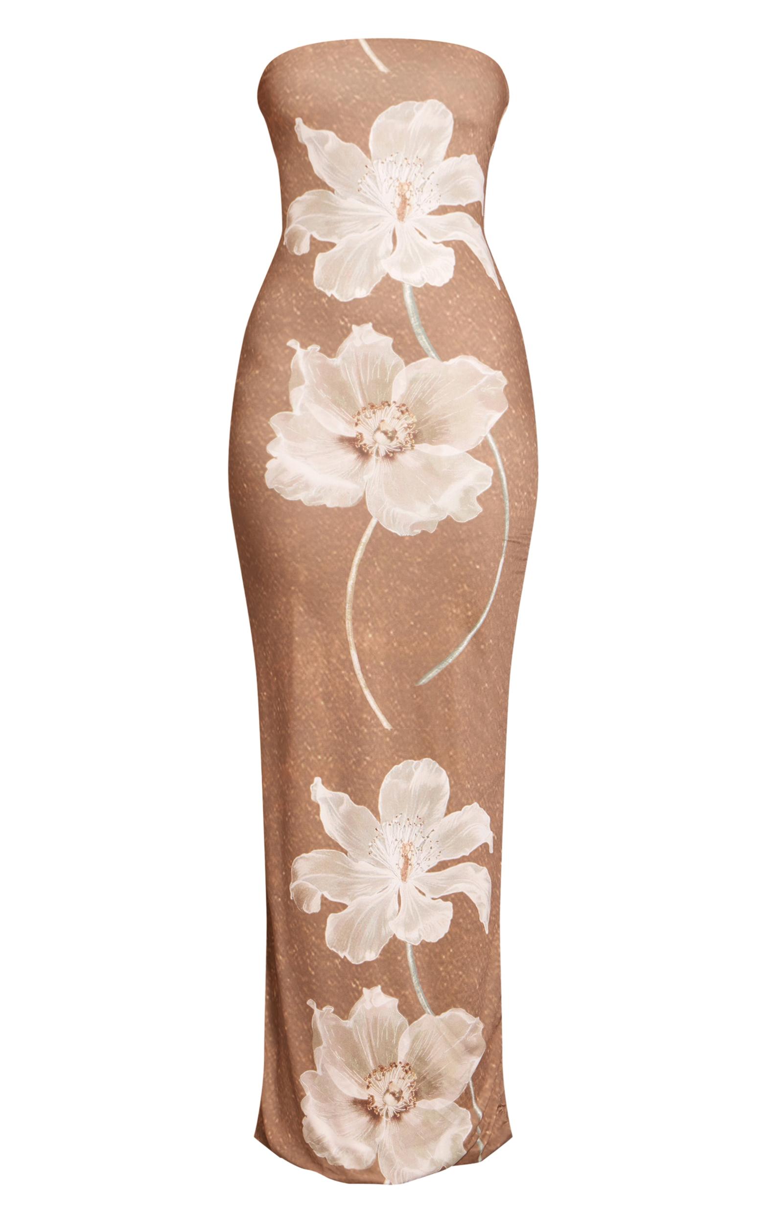 Introduce feminine charm with the taupe flower print bandeau maxi dress. Made from a lightweight woven fabric, it’s adorned with a delicate floral print and features a bandeau neckline for a soft, romantic feel. Style with flat sandals and a woven bag for warm-weather appeal.Length approx 145cm/57inch (Based on sample size US 4)Model wears size UK 8/ EU 36/ AUS 8/ US 4Model Height - 5ft 9inchp]:!mb-4inch>Brand: PrettyLittleThingCategory: DressesProduct type: Bodycon DressColor: TaupeMaterial: Slinky JerseyOccasion: Occasion